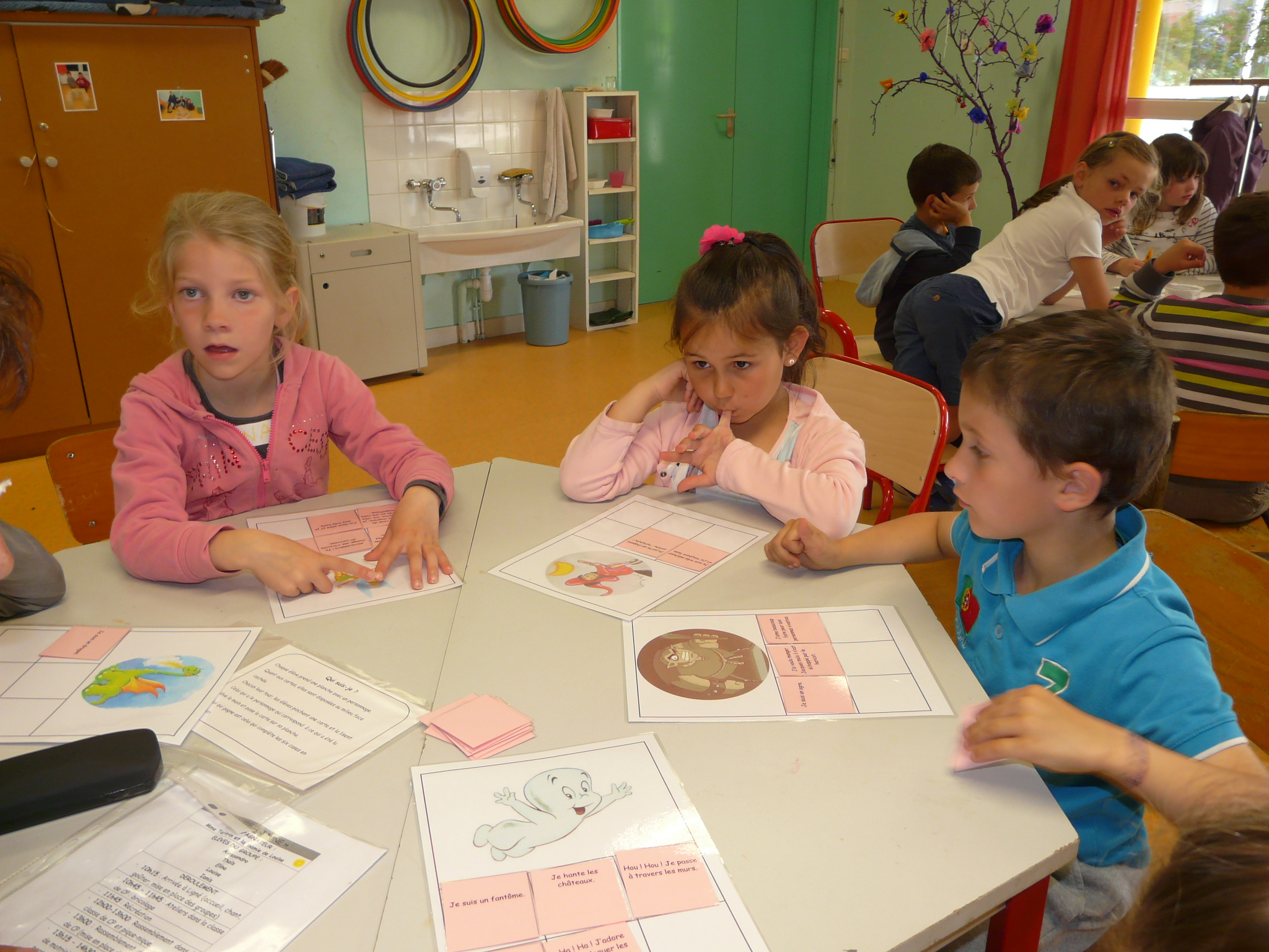 Les enfants ont participé à des jeux de lecture, ils ont réalisé un jeu de memory avec de gentils montres. Ils ont aussi fabriqué un poisson-bilboquet en lisant une fiche technique.