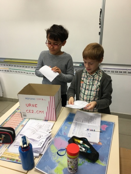 Le lundi 5 octobre, ils ont exprimé leur choix et ont élu les délégués de l’école: Enzo et Claire (PPS-MS), Jade et Inès (PS-GS), Charlotte et Mia (CP), Louiza et Timothée (CE1-CE2), Lyam et Diane (CE2-CM1), Maëlly et Baptiste (CM1-CM2).