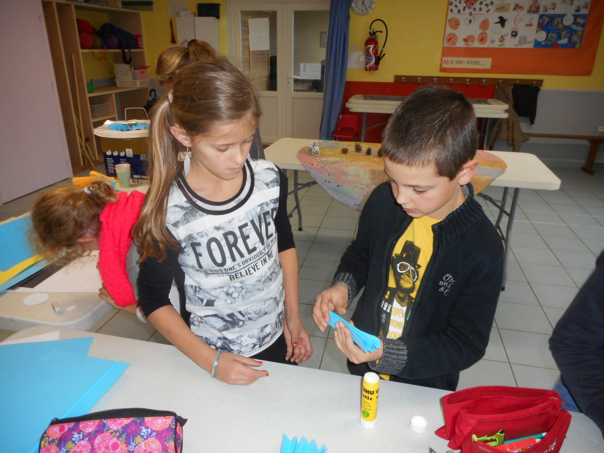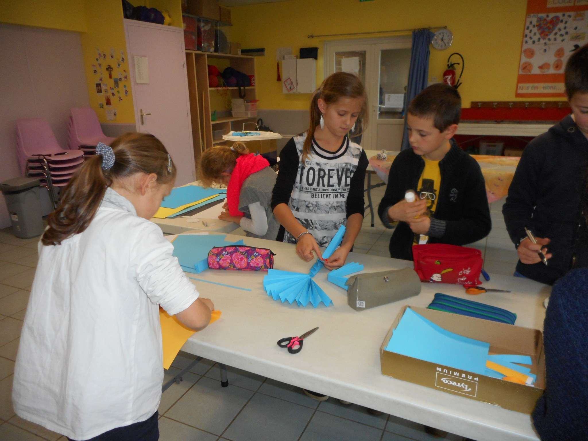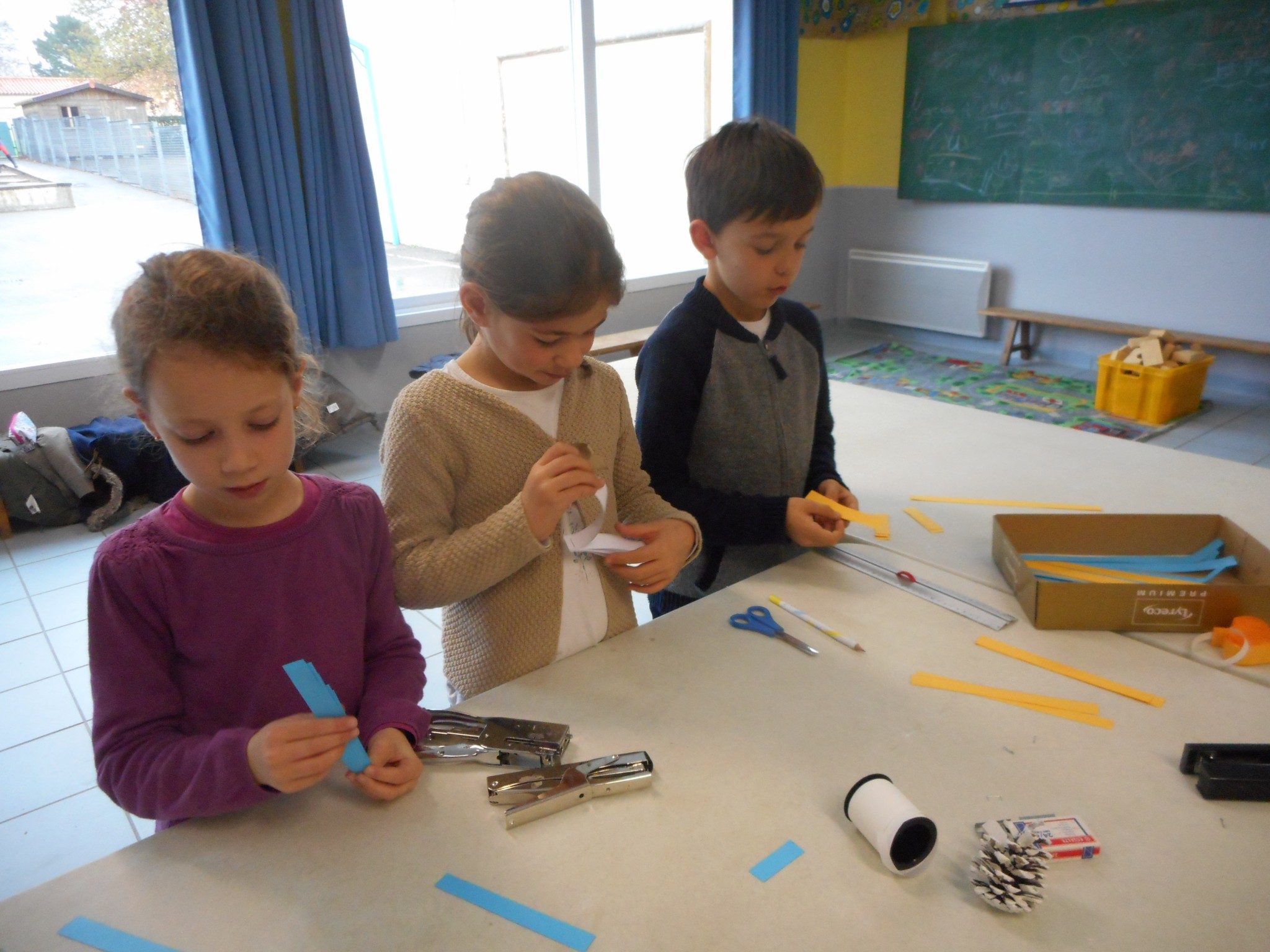 Sur le temps d’APC, dans le cadre du projet d’école, les enfants participent à des ateliers “bricolage”.