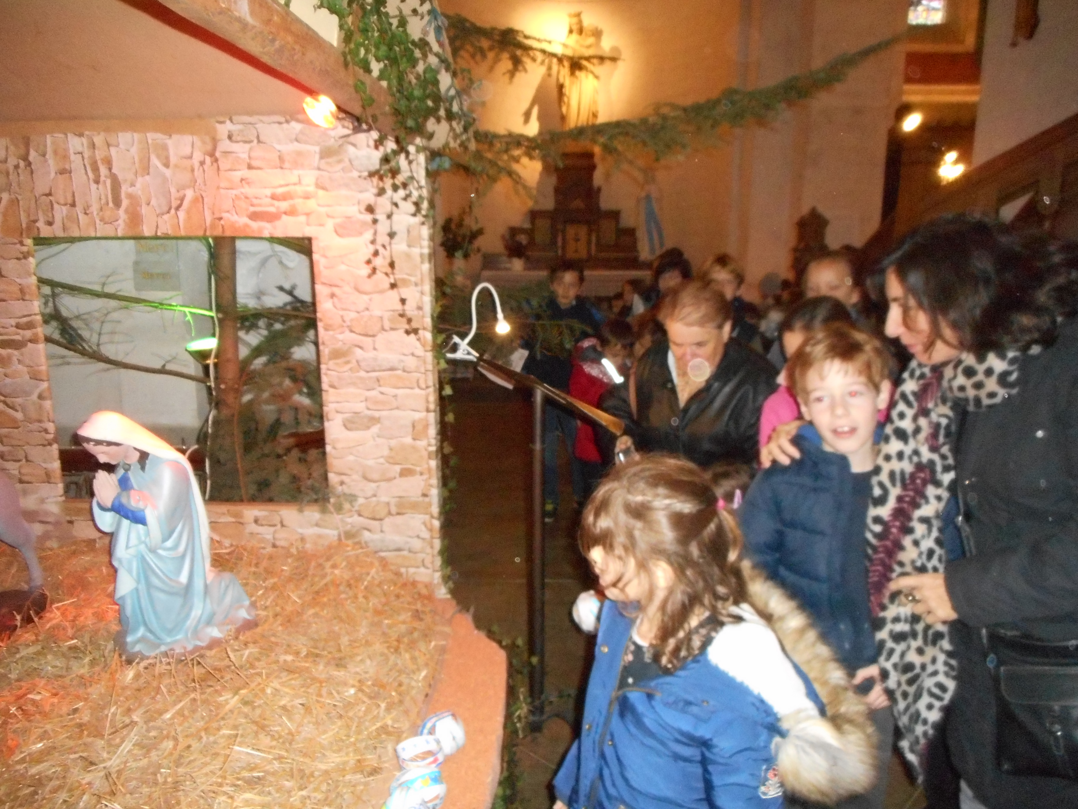 Et les plus jeunes ont déposé les boules de Noël, préparées en classe, devant la crèche.