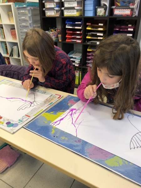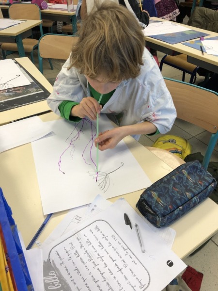 Cette période, la classe de CE1/CE2 travaille sur l’air. Est-ce un matière ? Comment le voir ? A quoi il sert ? Est-ce qu’il a un poids, une force ? Après avoir expérimenté et échangé, les élèves ont mis en couleur le vent et la force du vent.