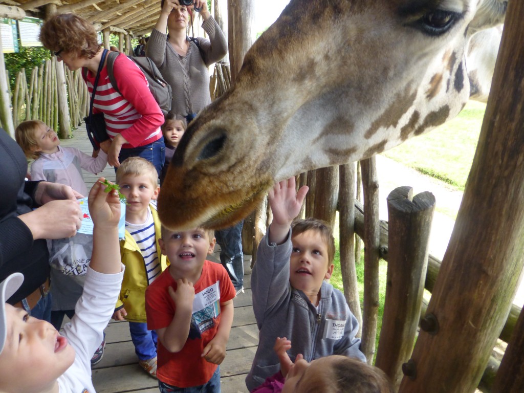 nous avons adoré donner des feuilles aux girafes