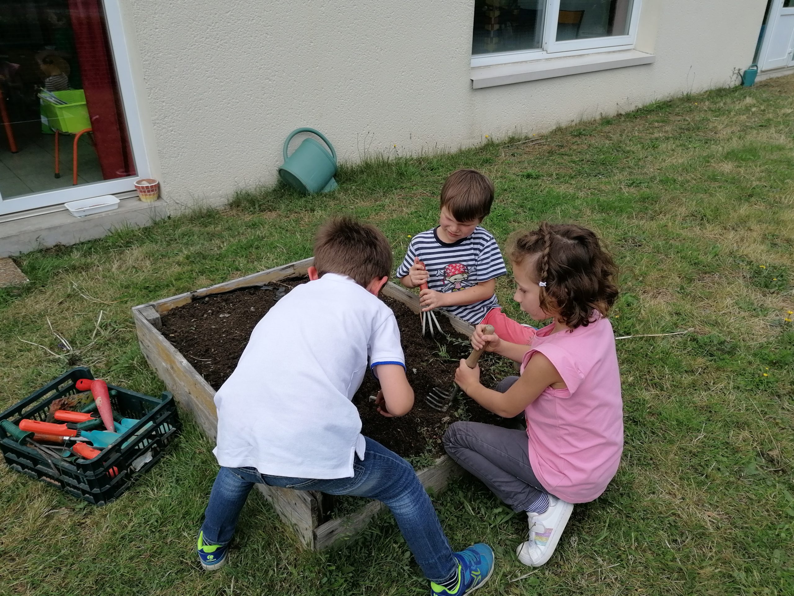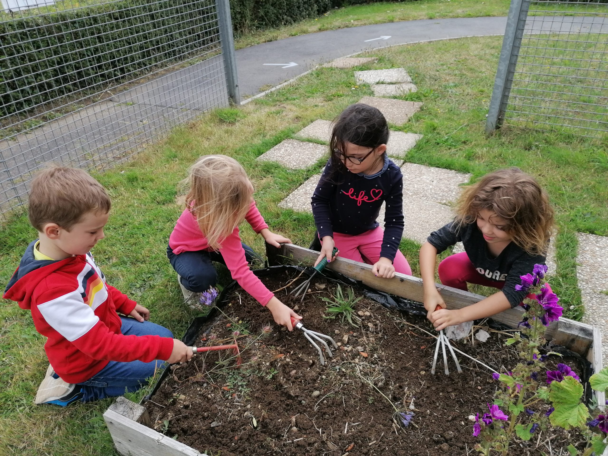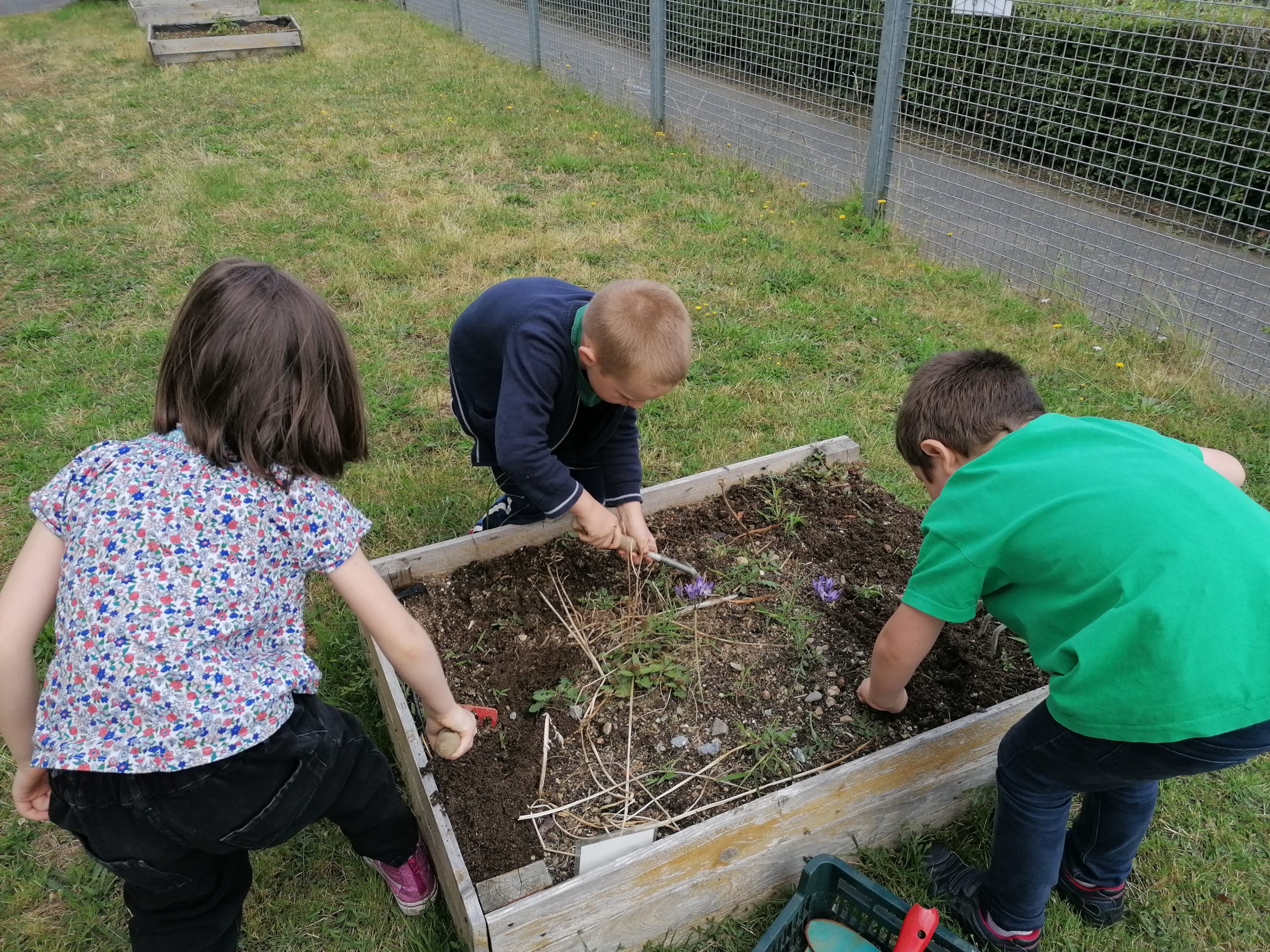 Cette semaine entre deux averses, nous avons nettoyé nos jardins et semé des radis. Nous comptons les manger avant les vacances!
