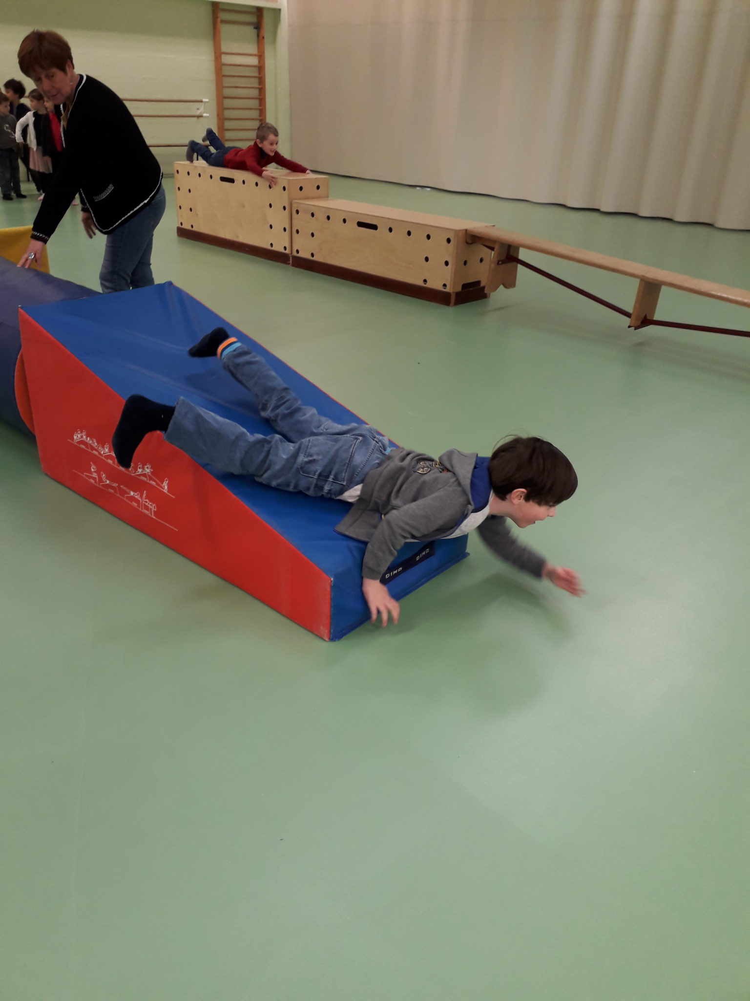 Glisser, marcher, s’équilibrer… les enfants de MS-GS iront maintenant chaque semaine à la salle de sport.