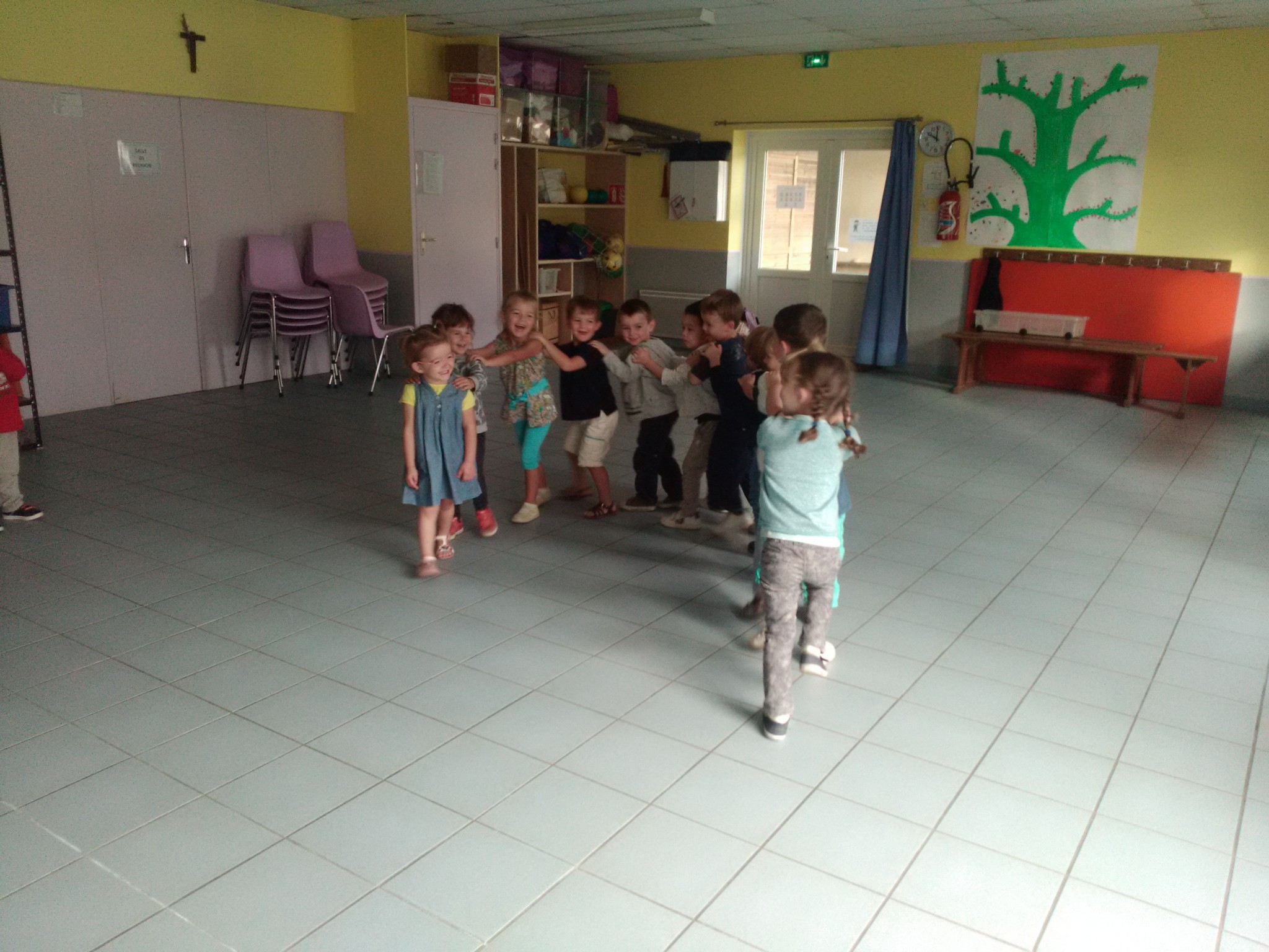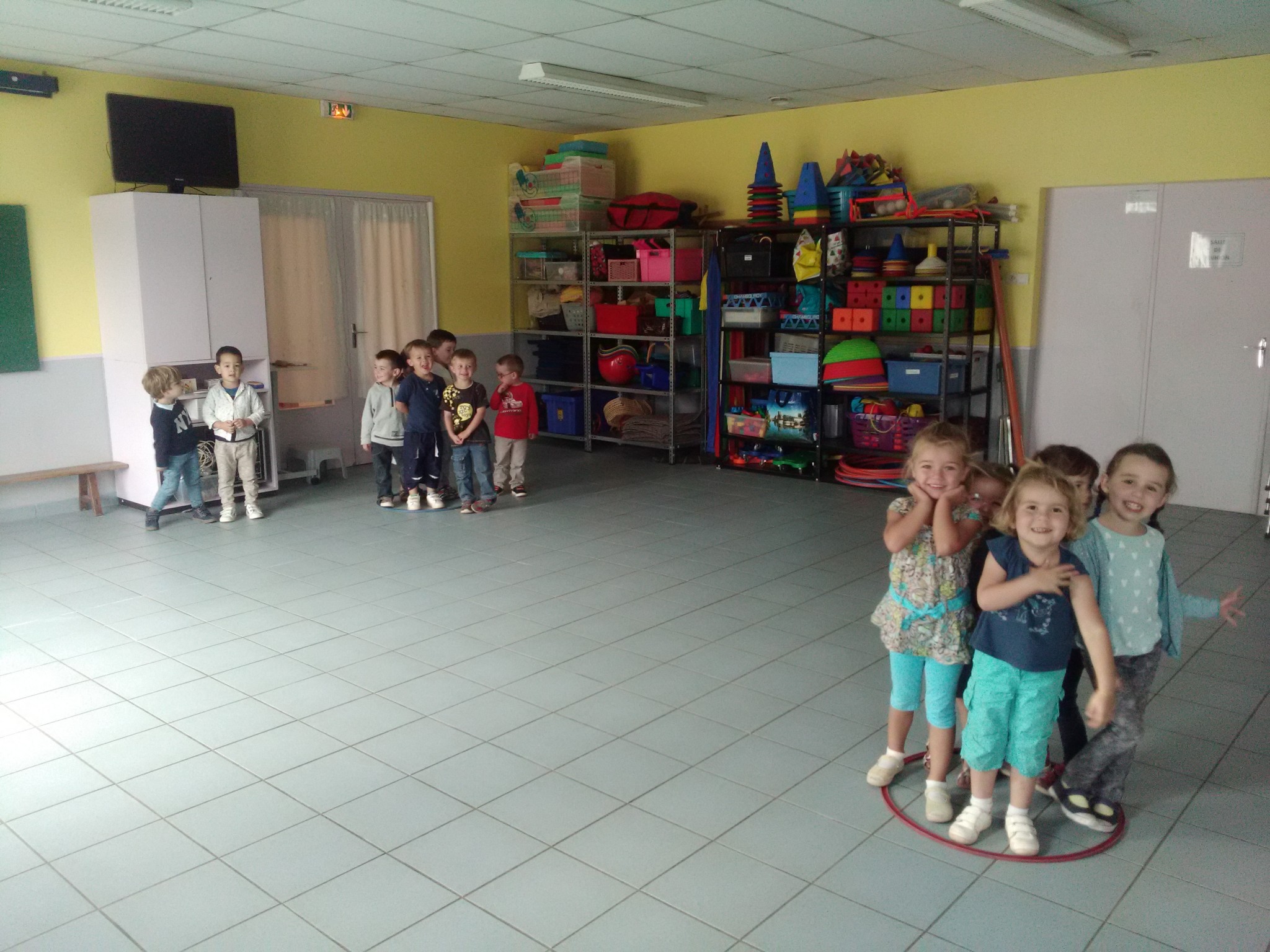 Parcours de la période : s’équilibrer, sauter dans un cerceau, enjamber, ramper, lancer.
