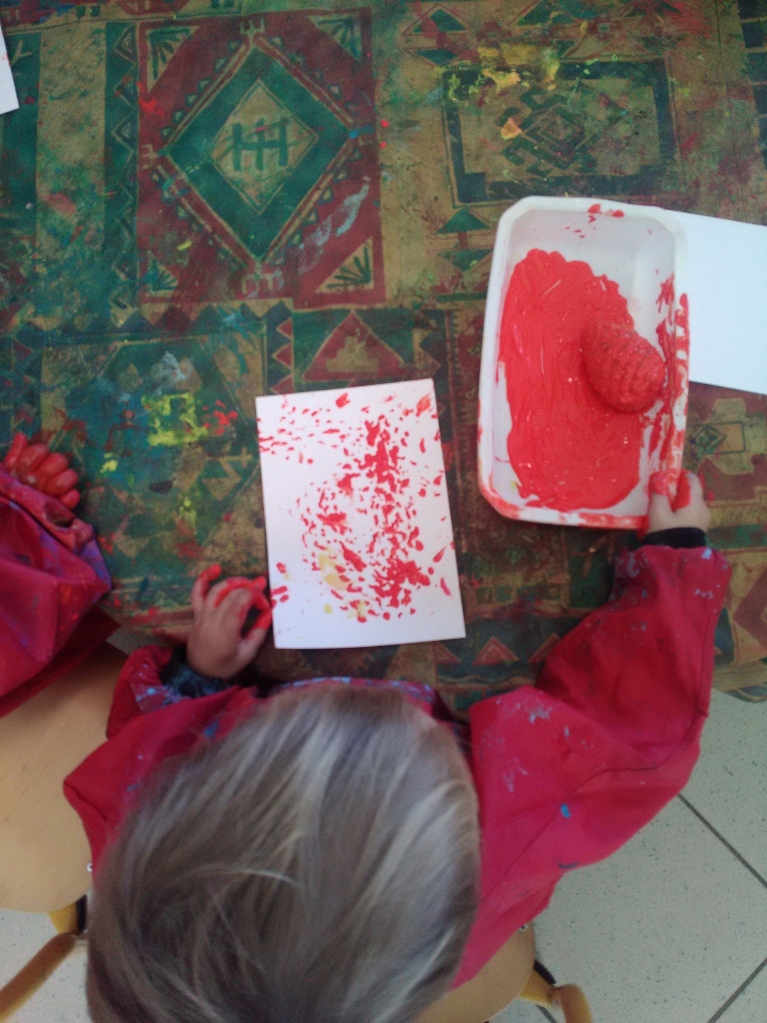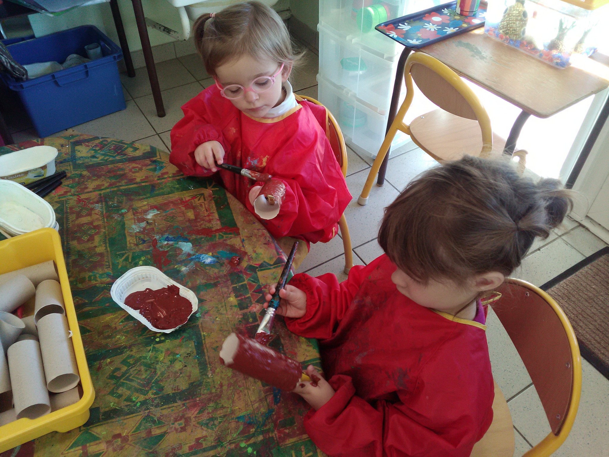 -peinture sur rouleau cartonné en vue de futurs ateliers !