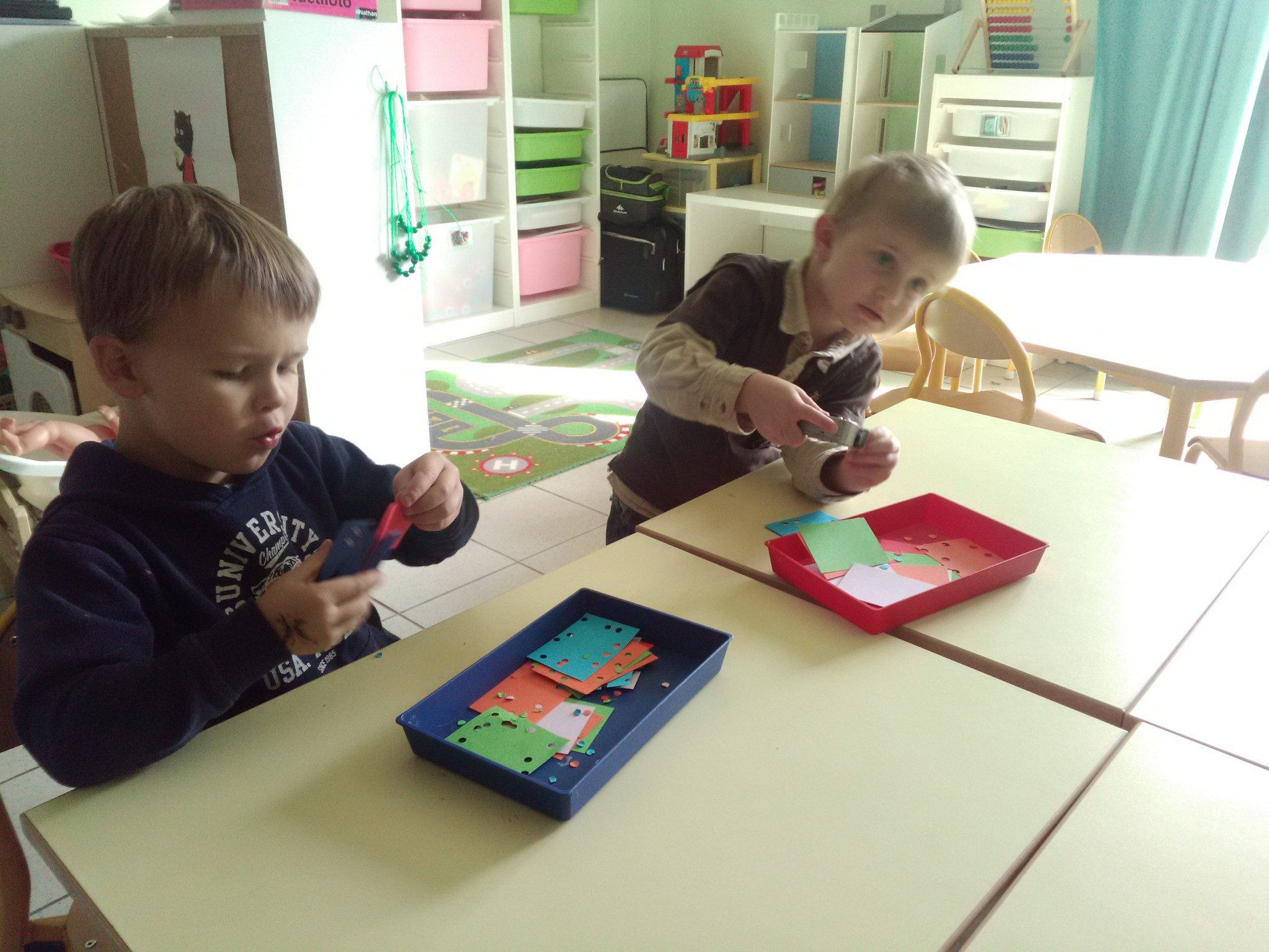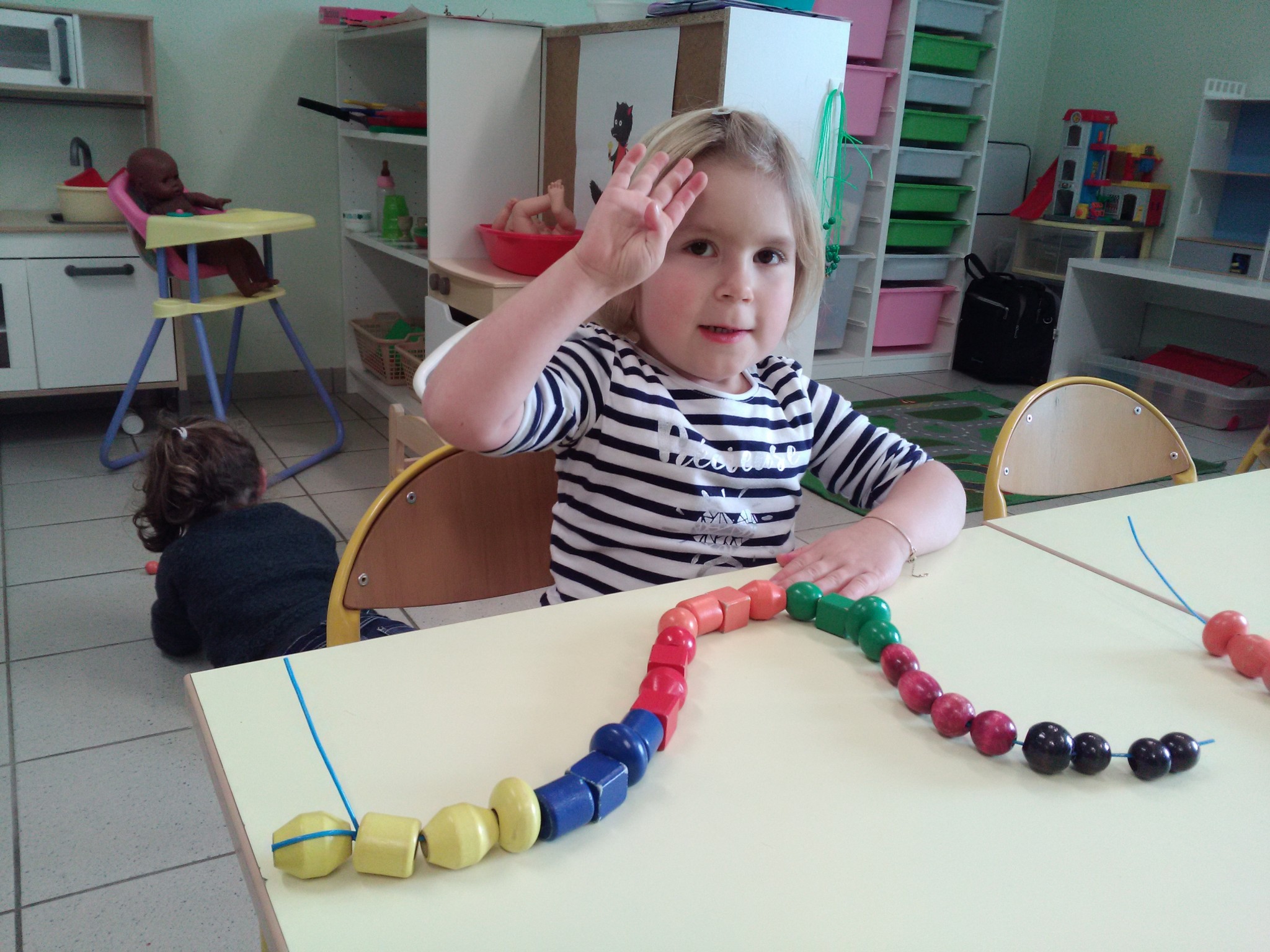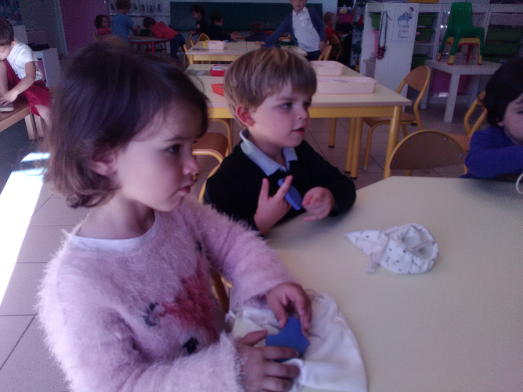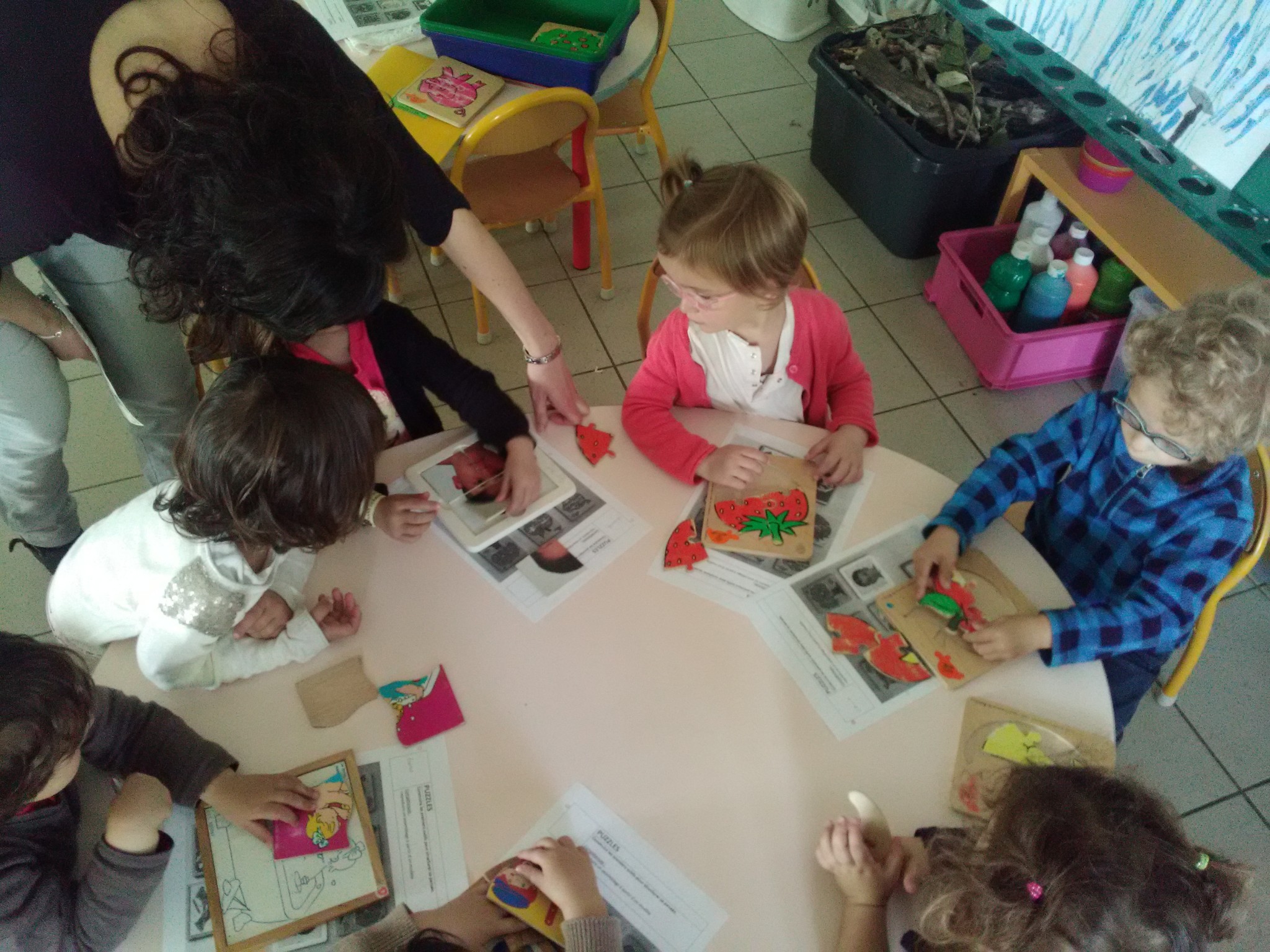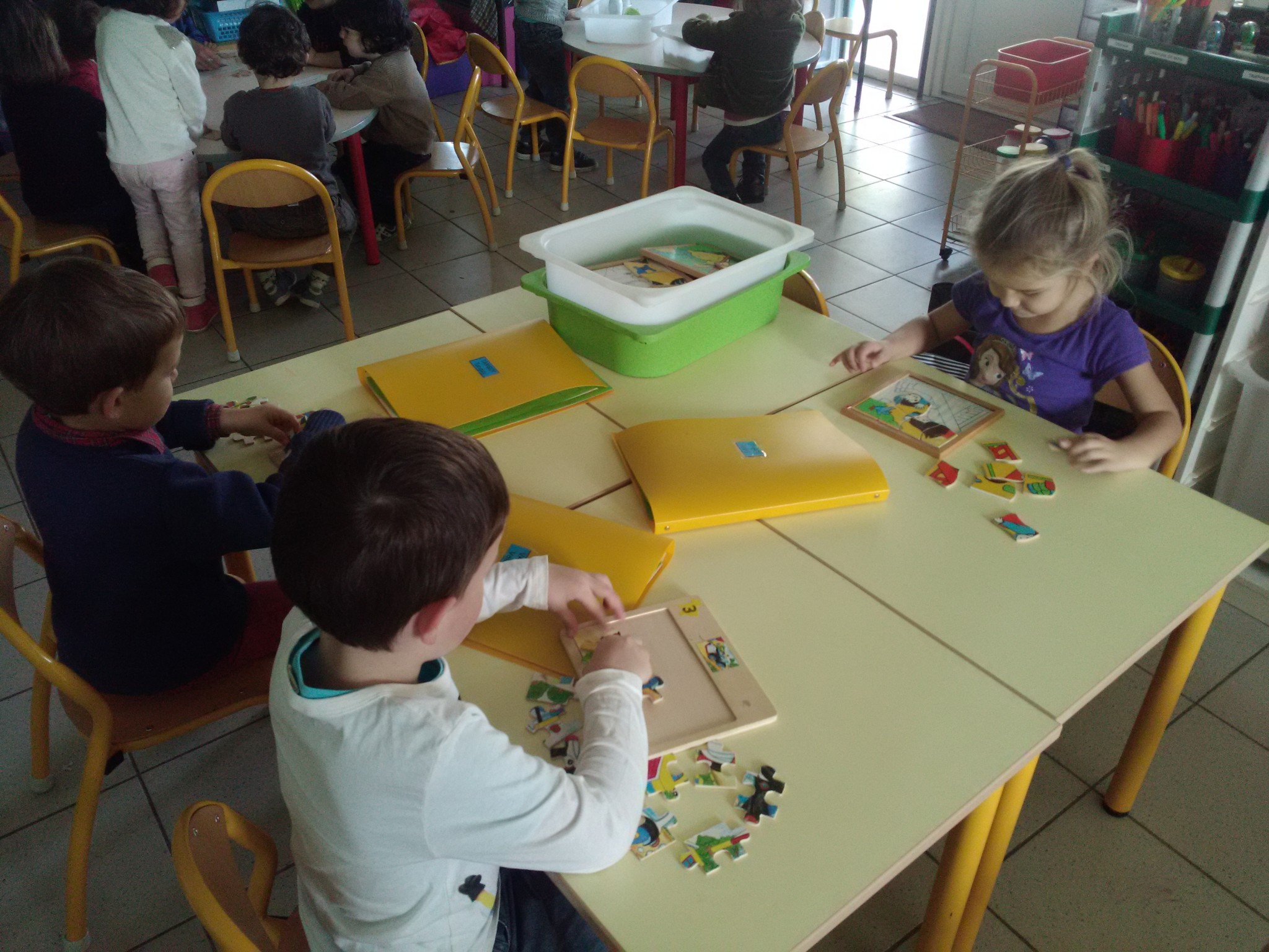 Pour les petits comme pour les moyens, les activités autonomes sont nombreuses : puzzles, abaques, atelier de dénombrement, manipulations diverses, jeu de construction, tri, motricité fine…