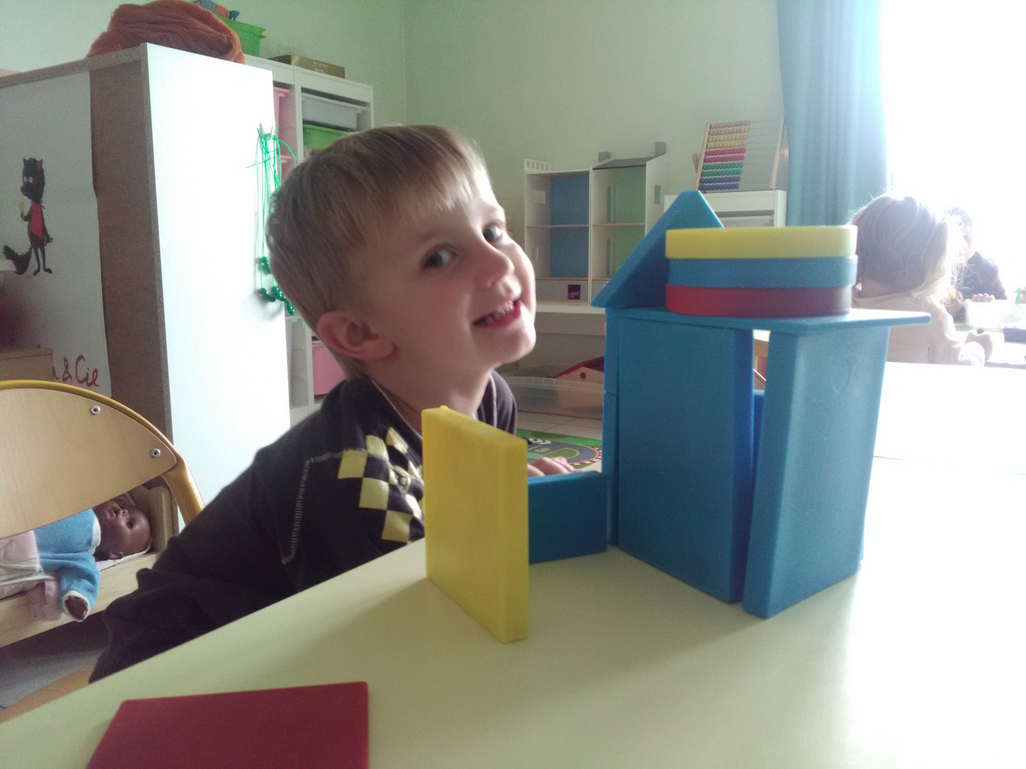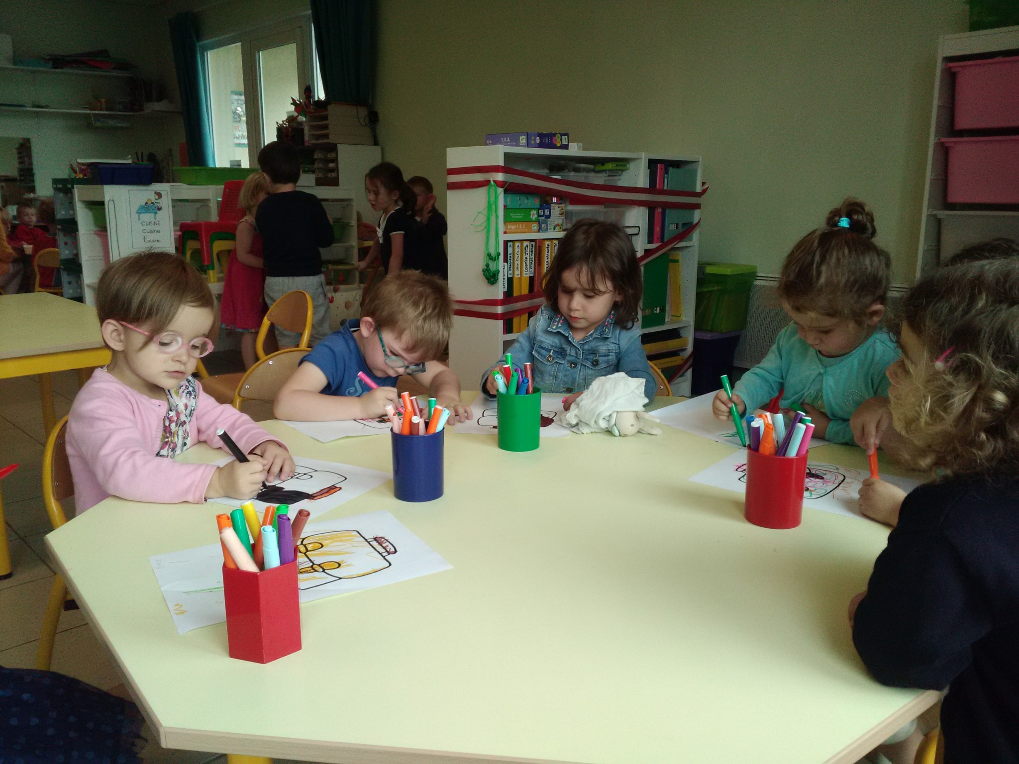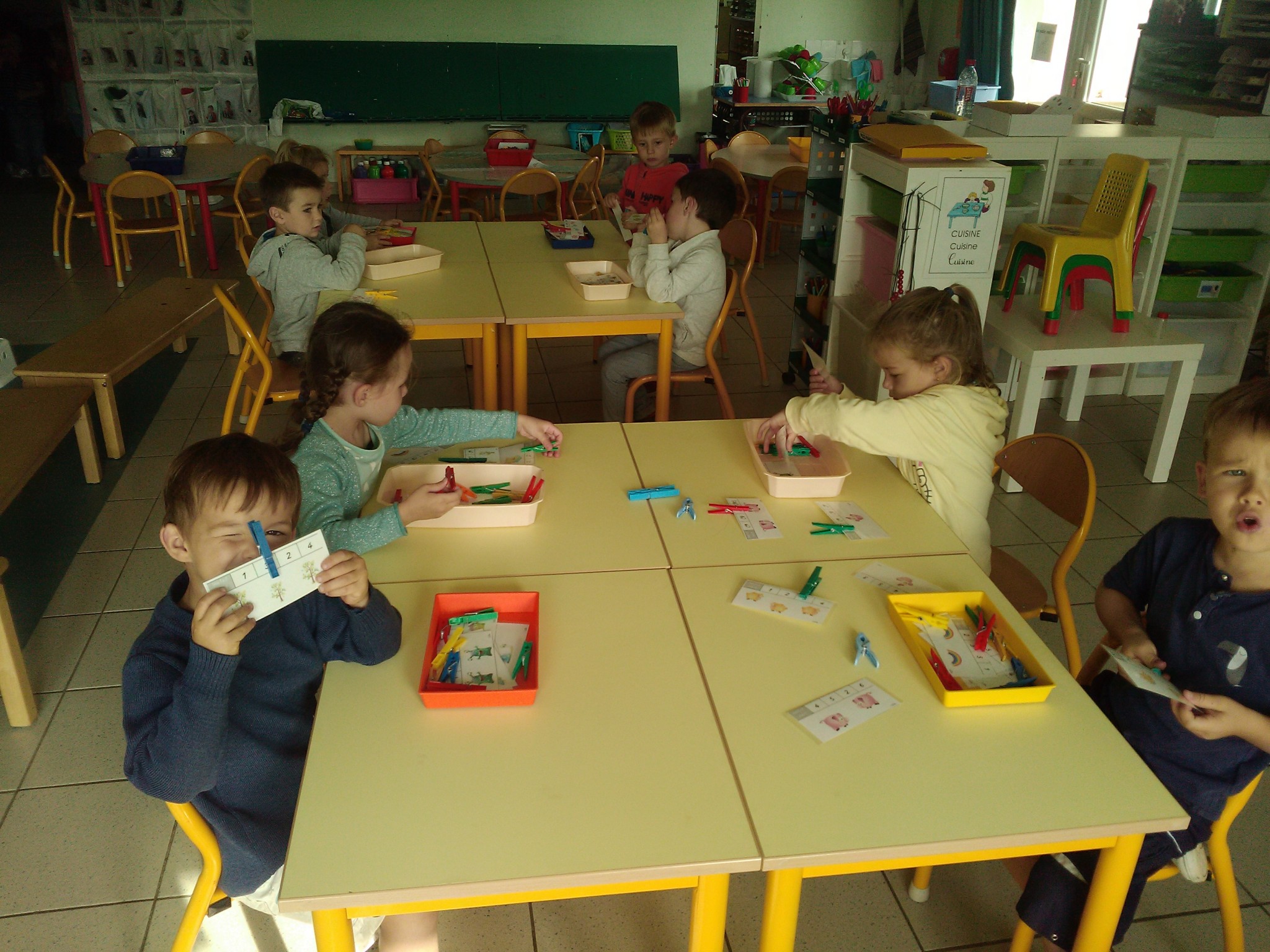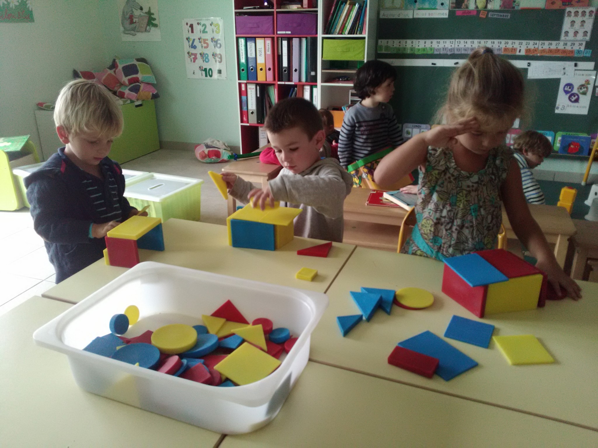 Pour les petits comme pour les moyens, les activités autonomes sont nombreuses : puzzles, encastrements, abaques, coloriage, manipulations diverses, jeu de construction, jeu de dé (MS)…