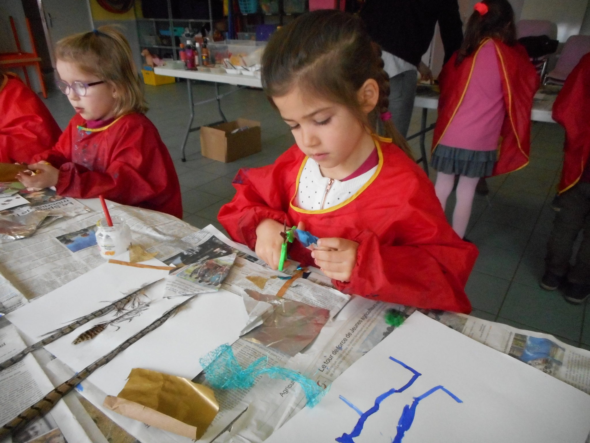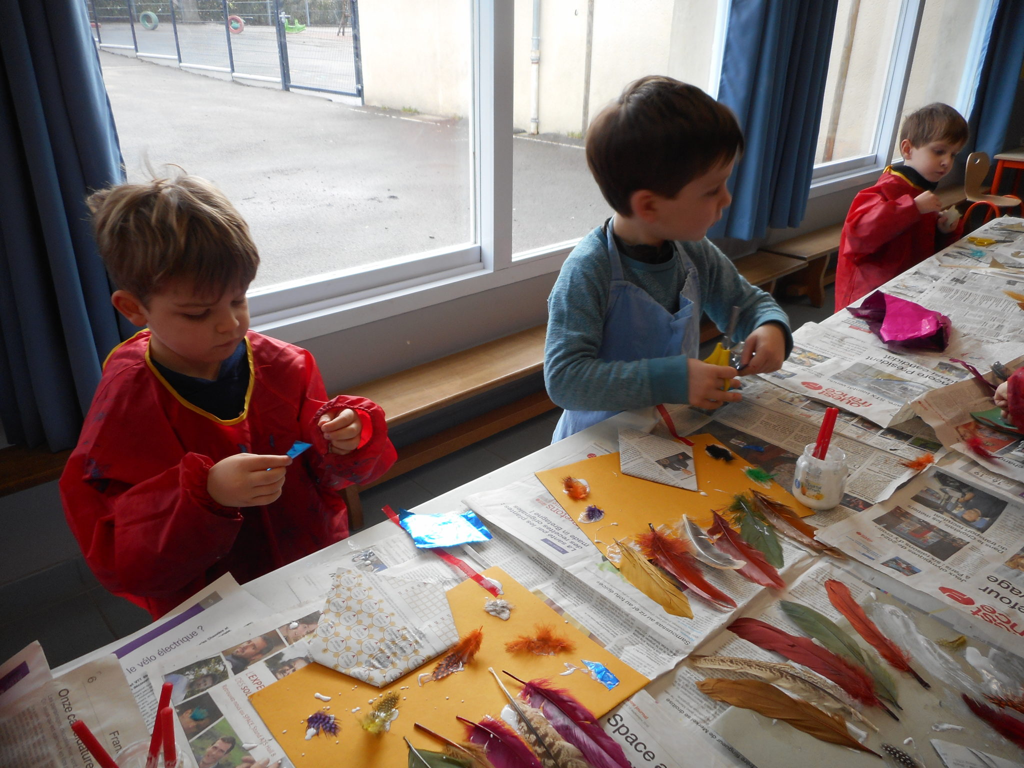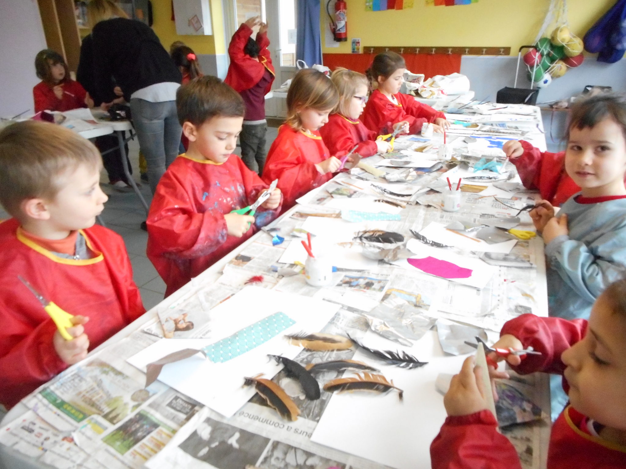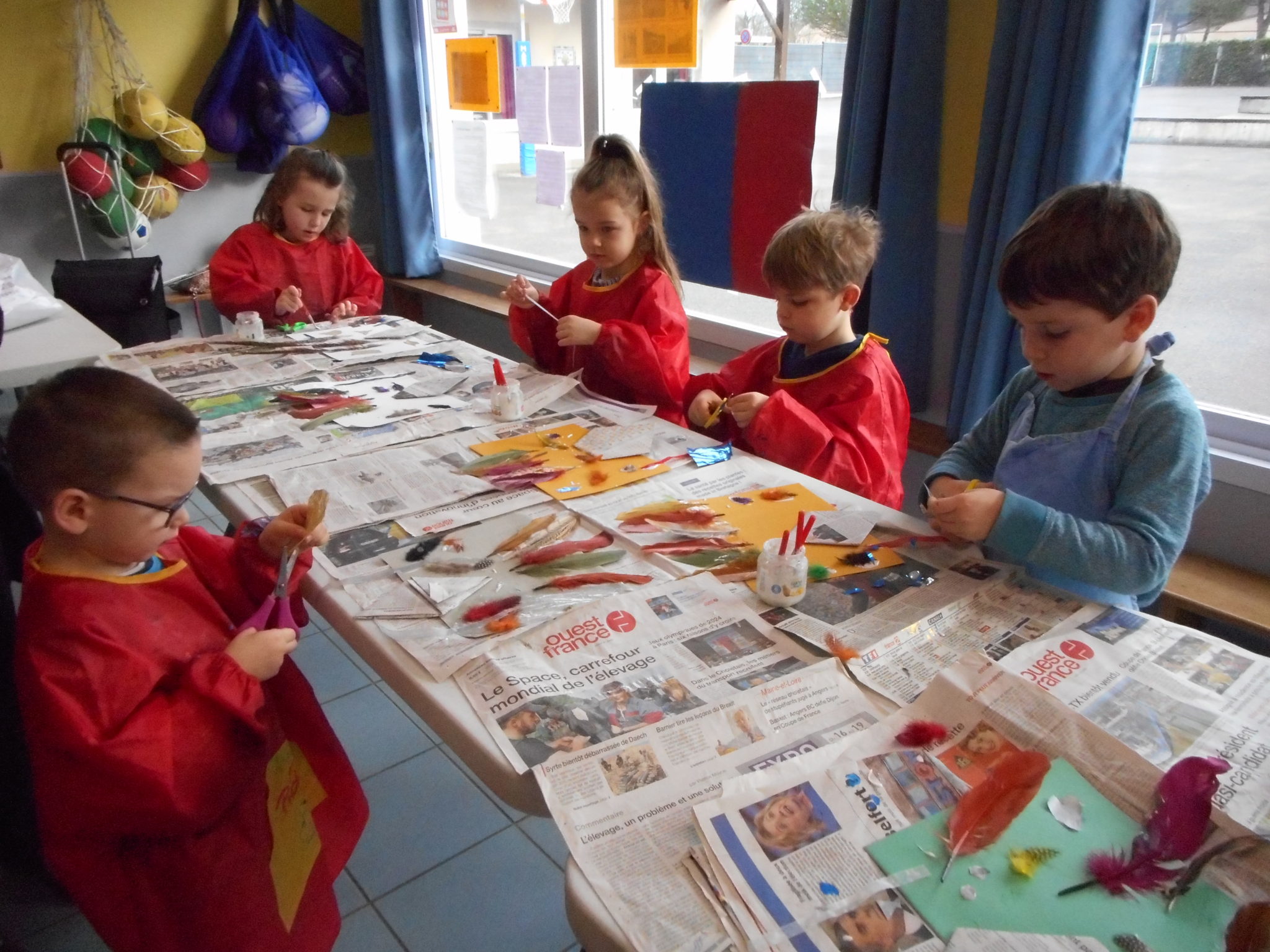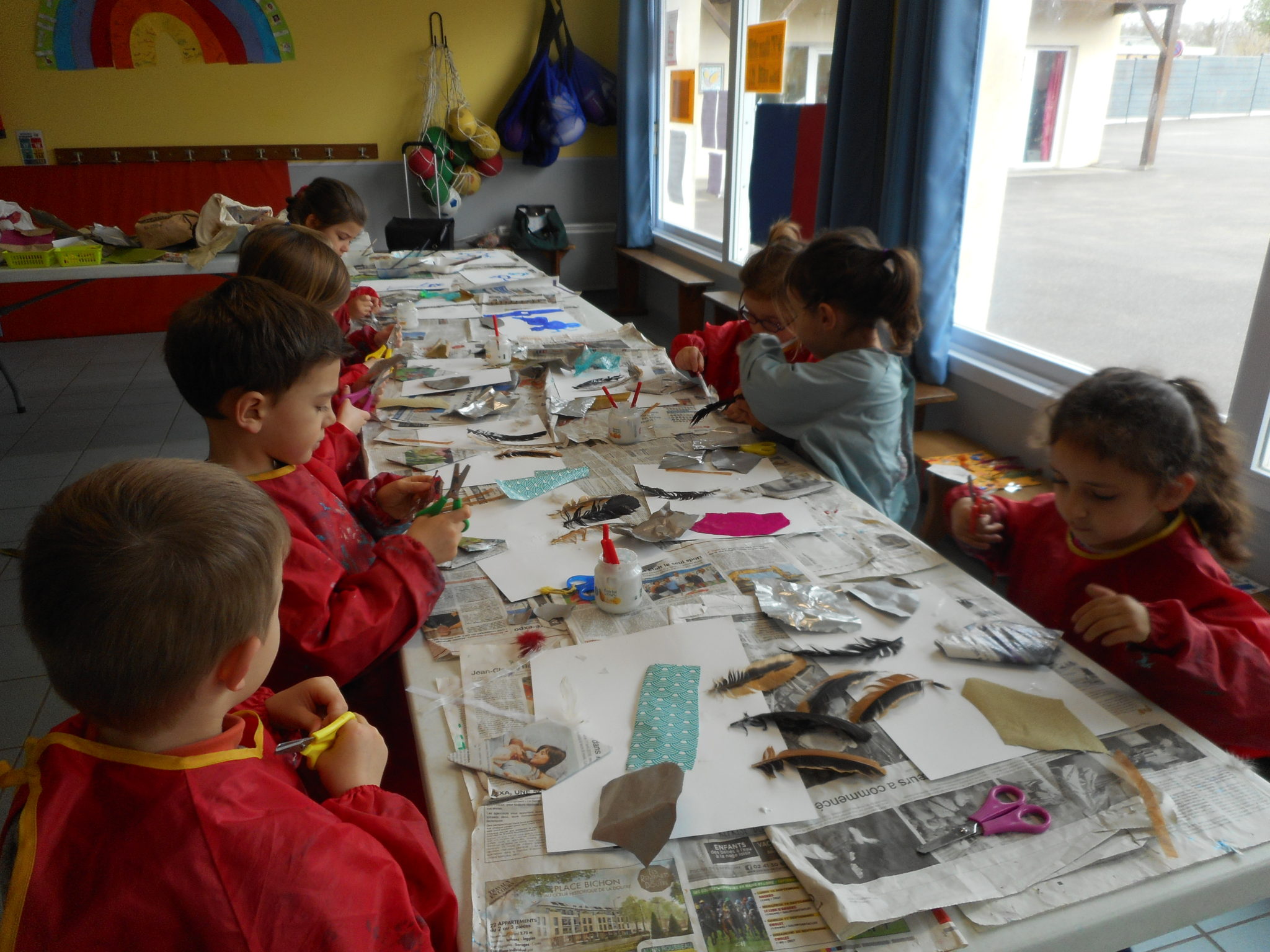 Dans le cadre de la saison culturelle de la commune, les enfants ont participé un atelier d’art plastique, avec Kim Dehau, en lien avec le spectacle “Plumes à gogo”.