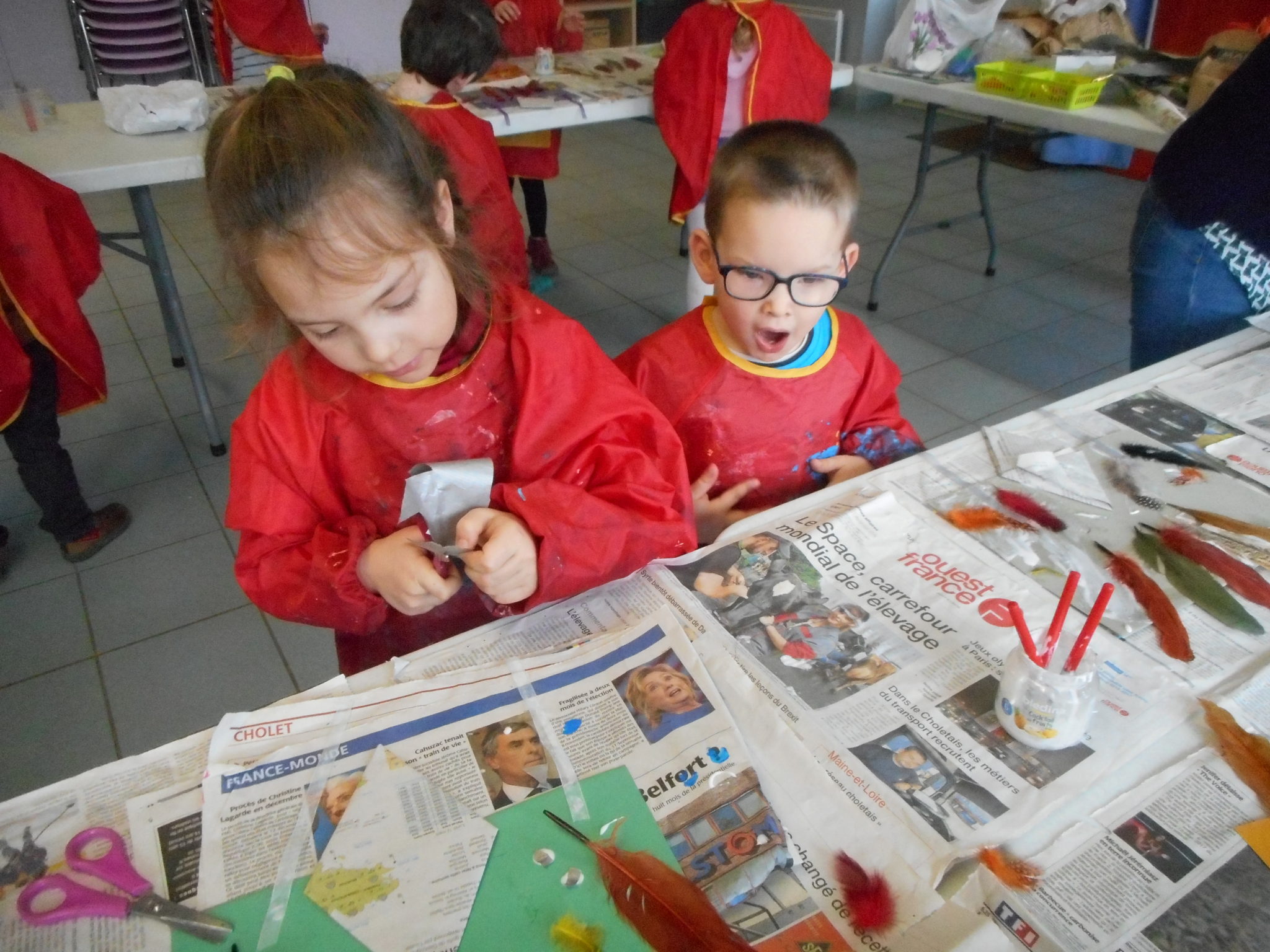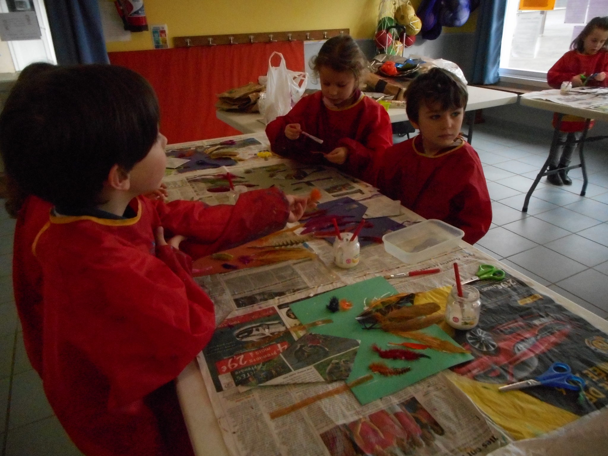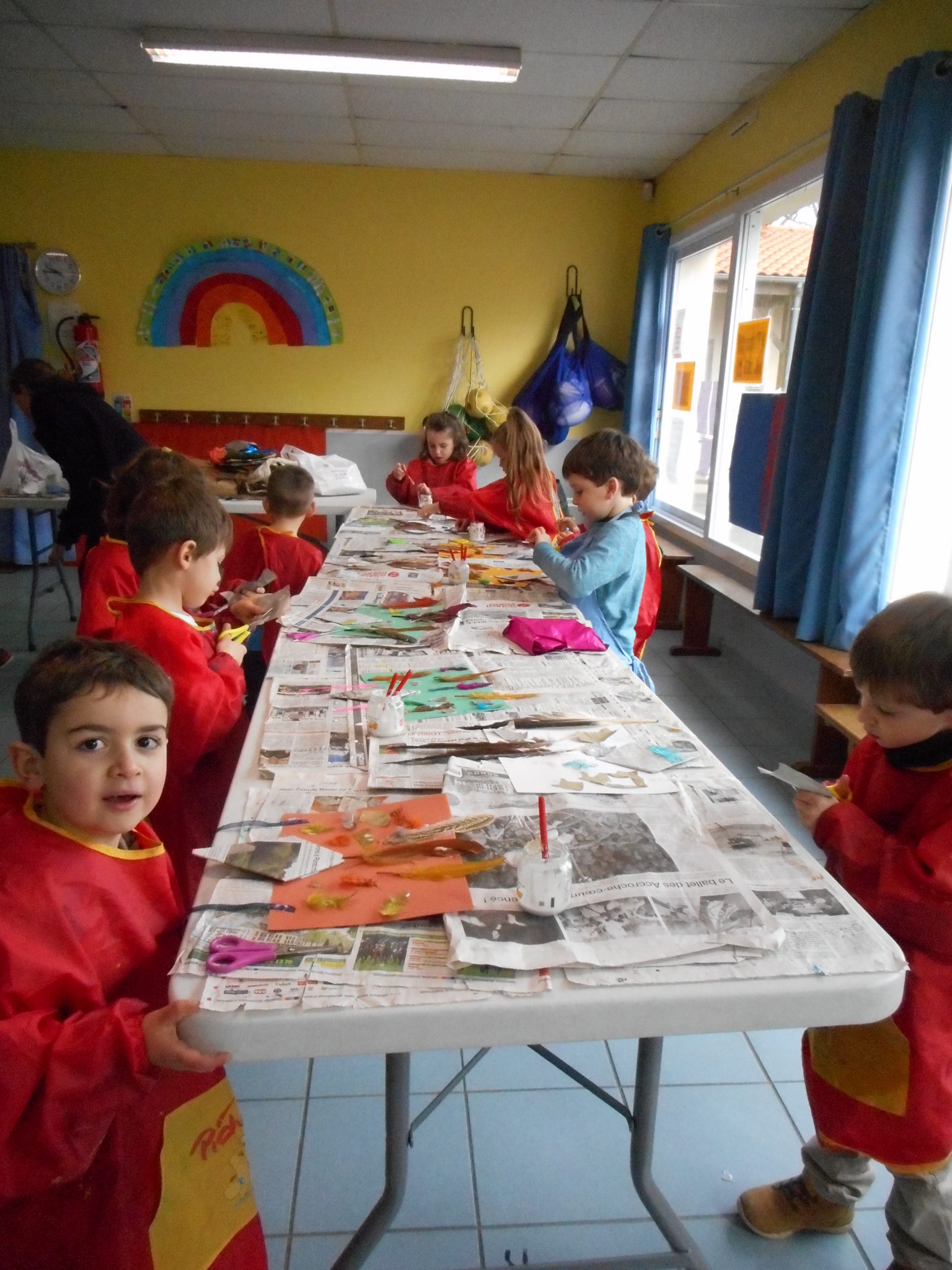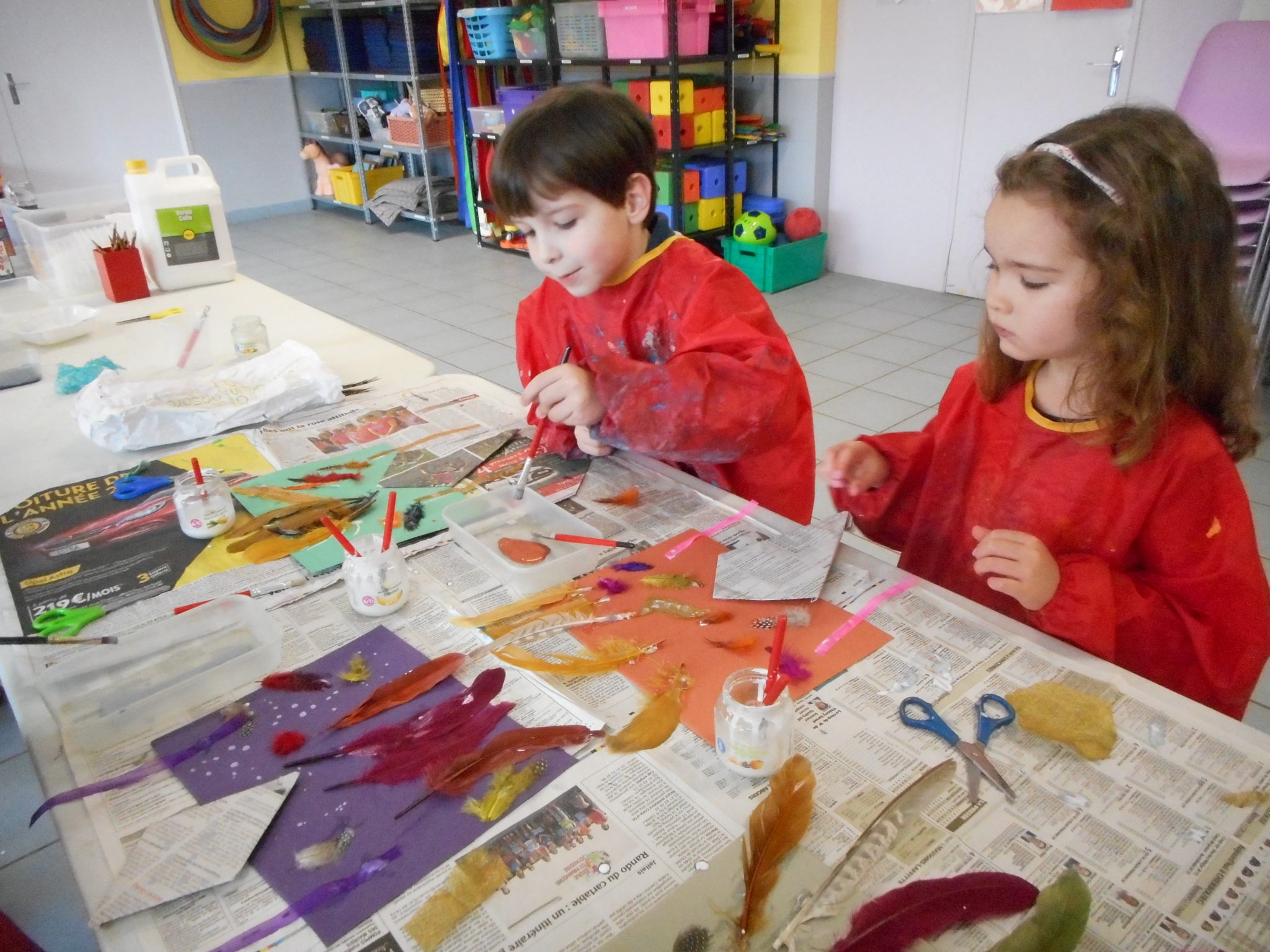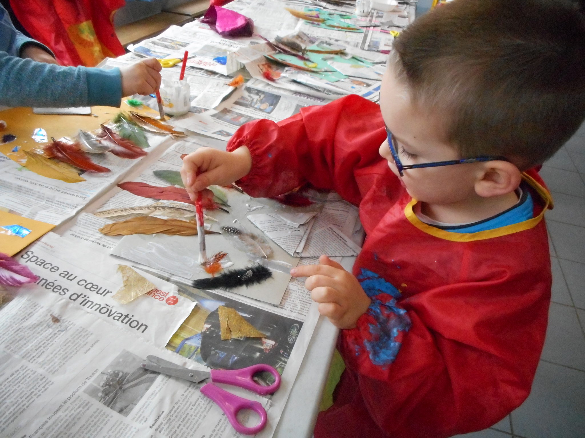 Dans le cadre de la saison culturelle de la commune, les enfants ont participé un atelier d’art plastique, avec Kim Dehau, en lien avec le spectacle “Plumes à gogo”.