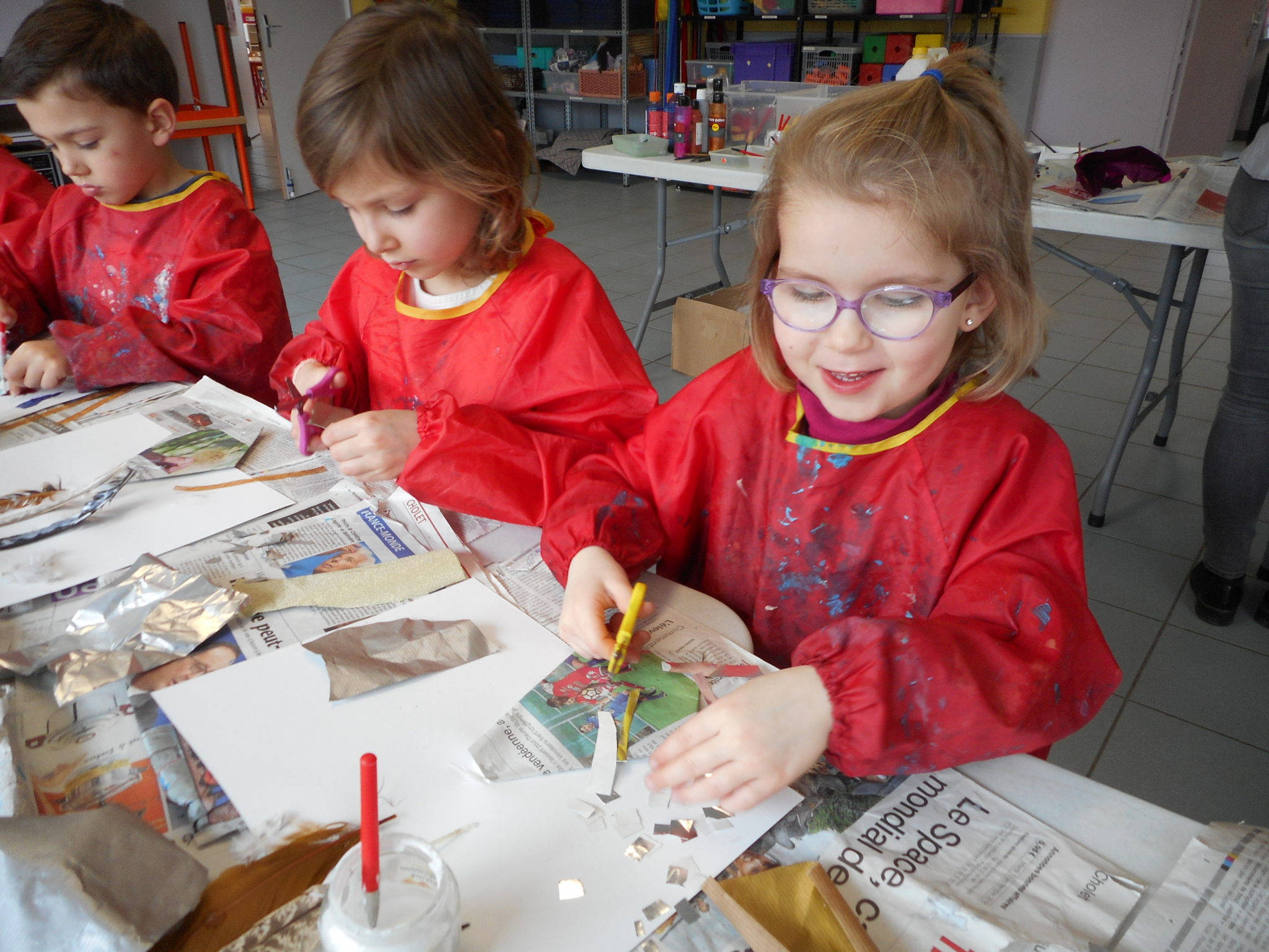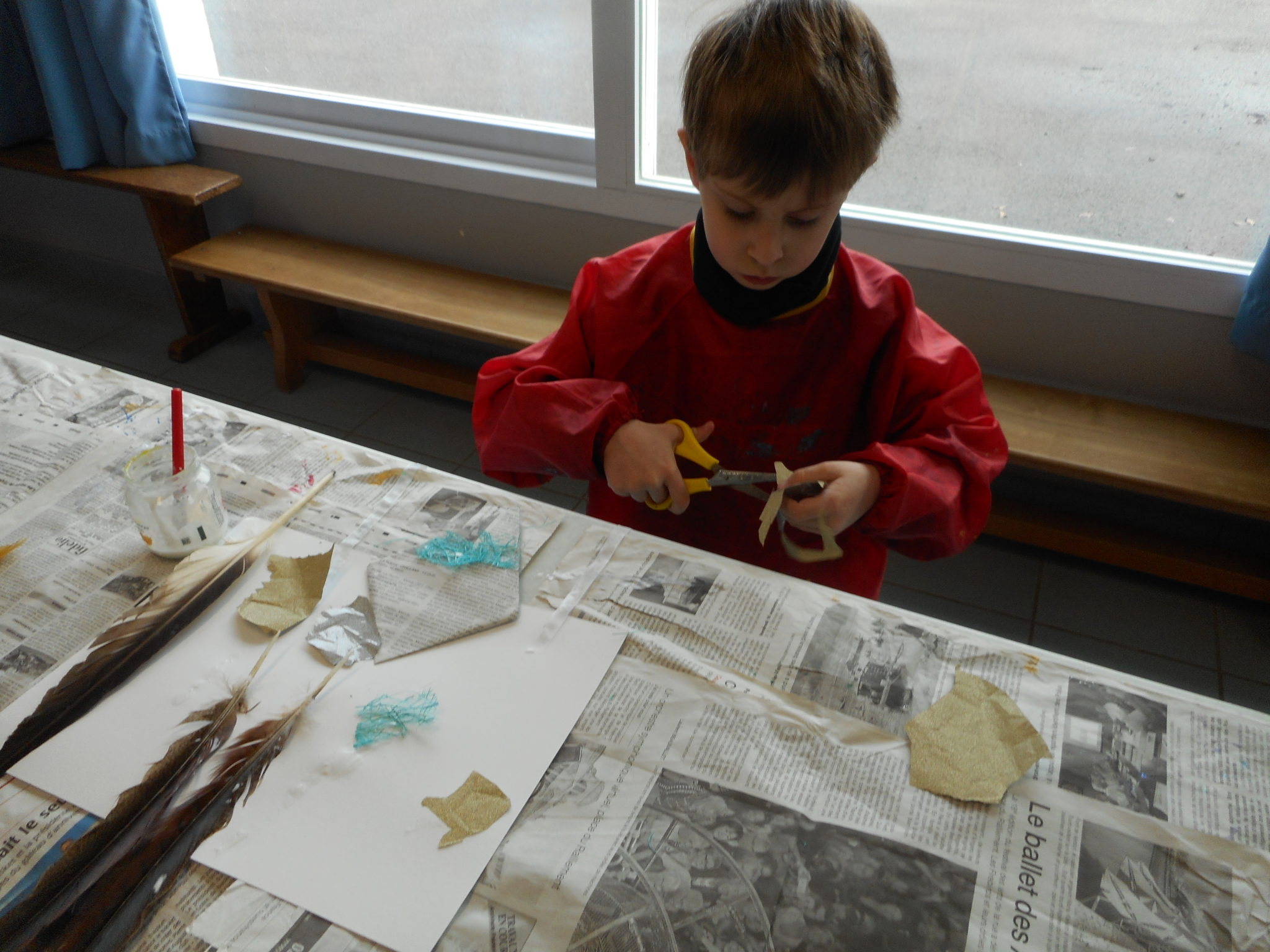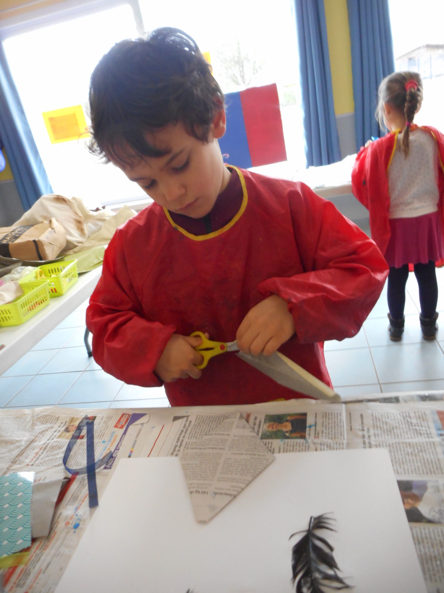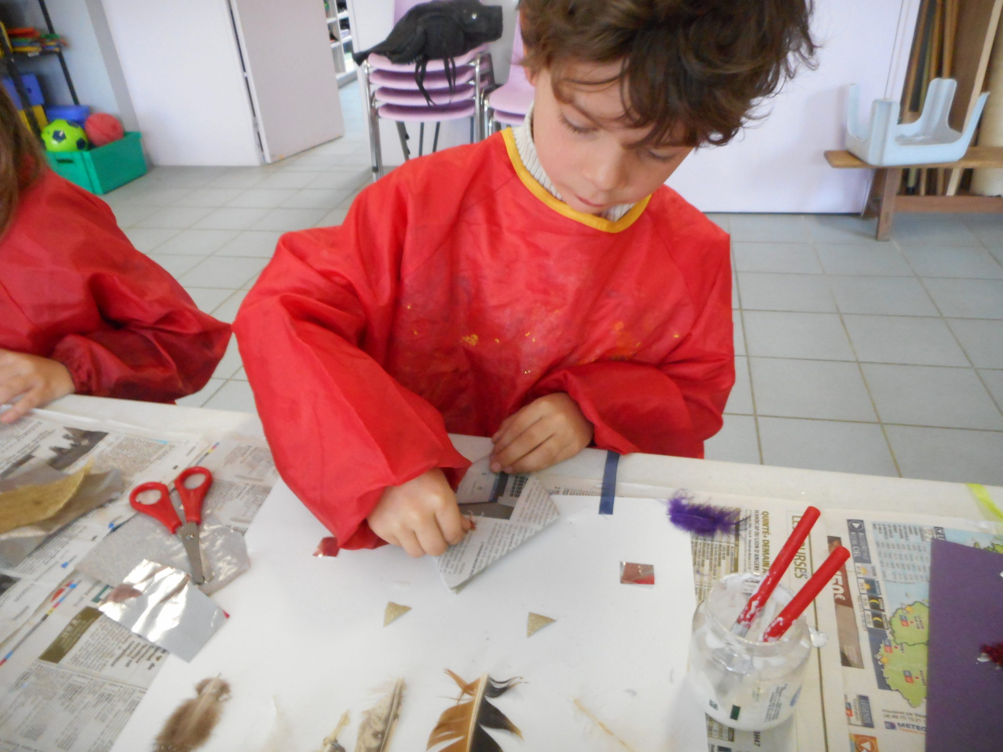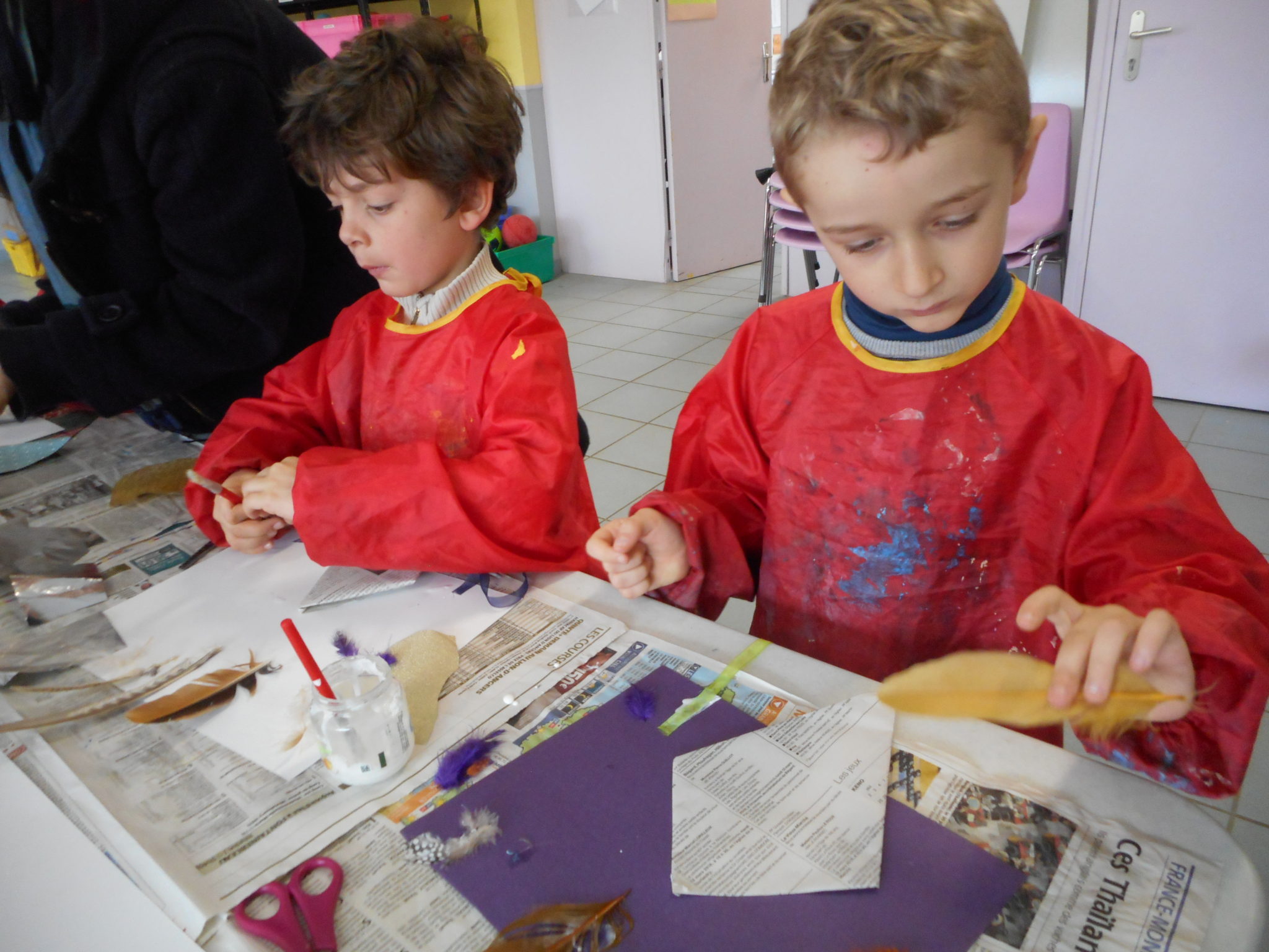 Dans le cadre de la saison culturelle de la commune, les enfants ont participé un atelier d’art plastique, avec Kim Dehau, en lien avec le spectacle “Plumes à gogo”.