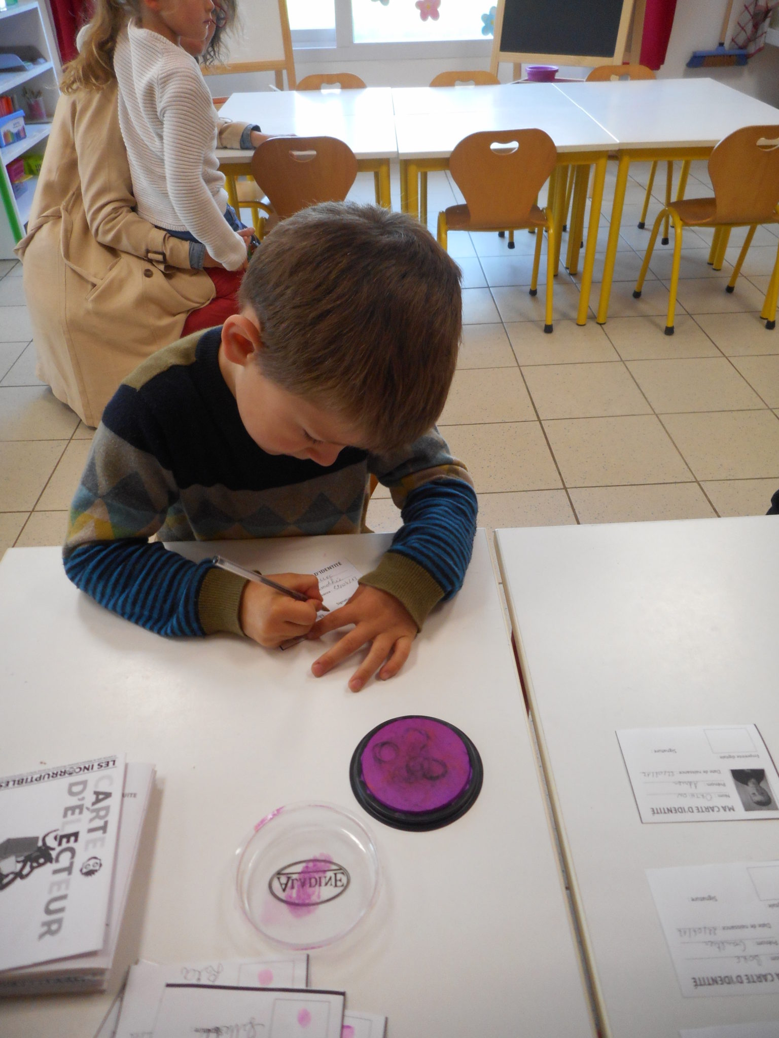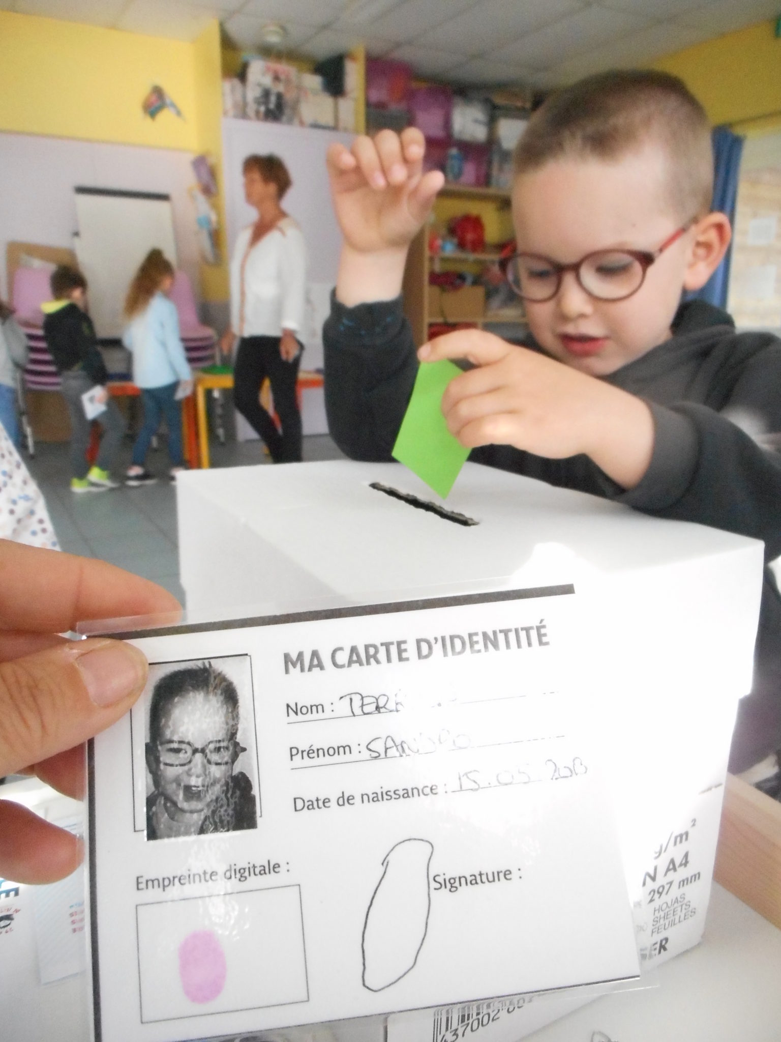 Avant cela, les enfants avaient réalisé leur carte d’identité: photo, signature et même empreinte digitale!