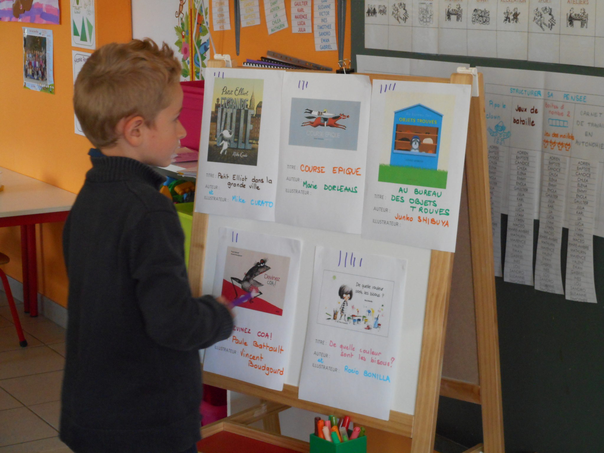 De retour en classe, les enfants ont procédé au dépouillement, ils ont compté les voix de chaque album. Le gagnant est “AU BUREAU DES OBJETS TROUVES”