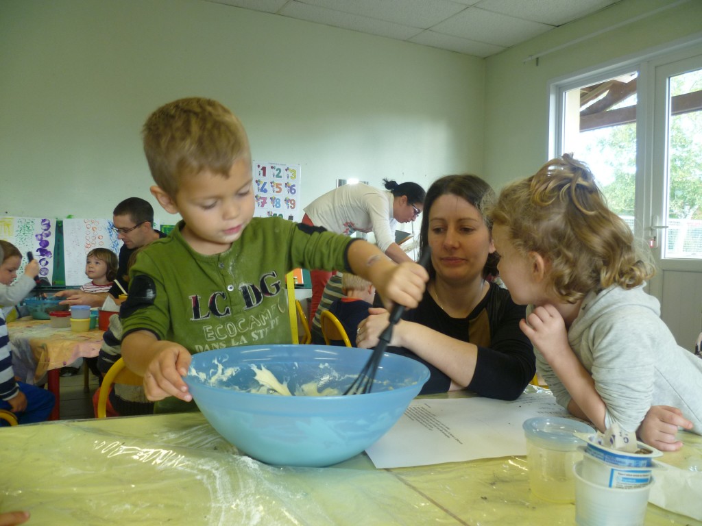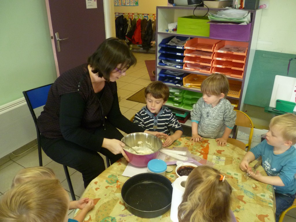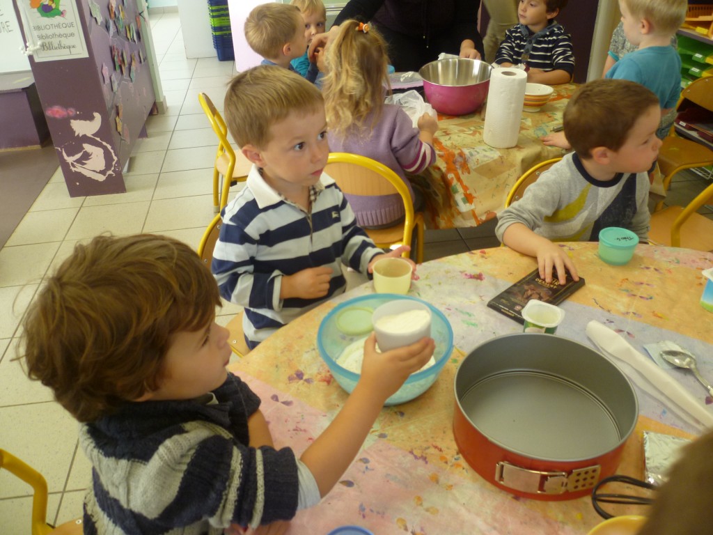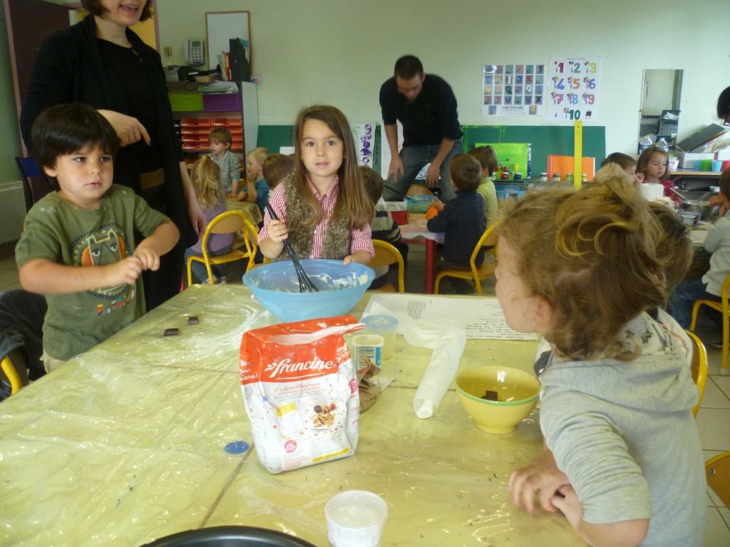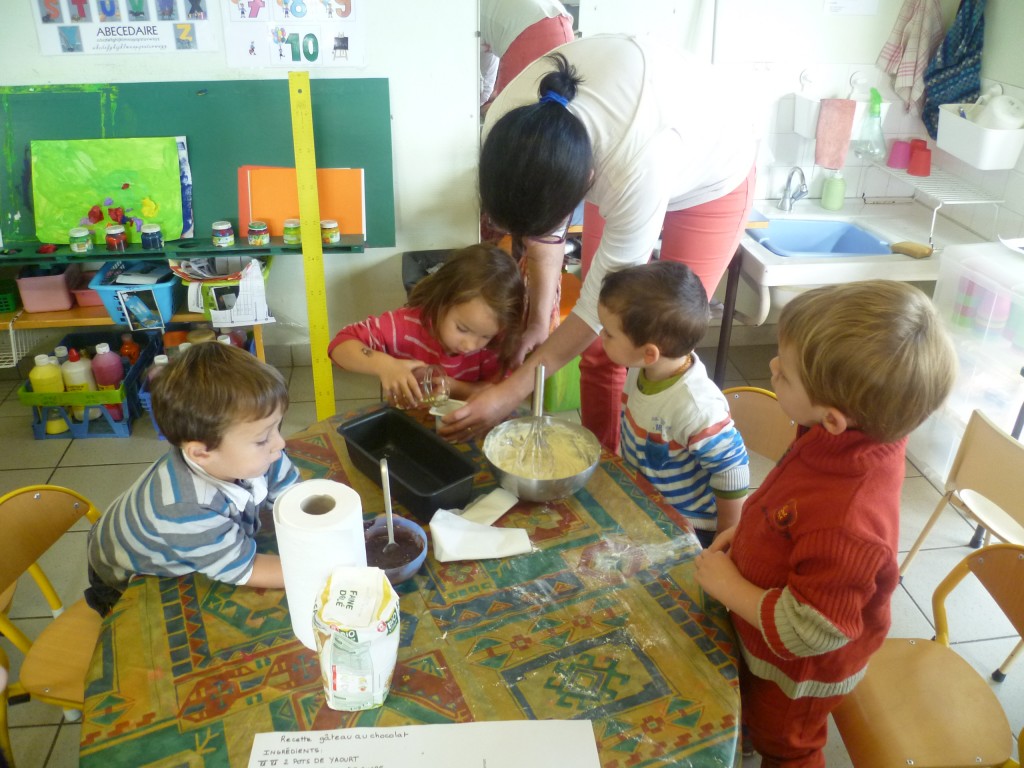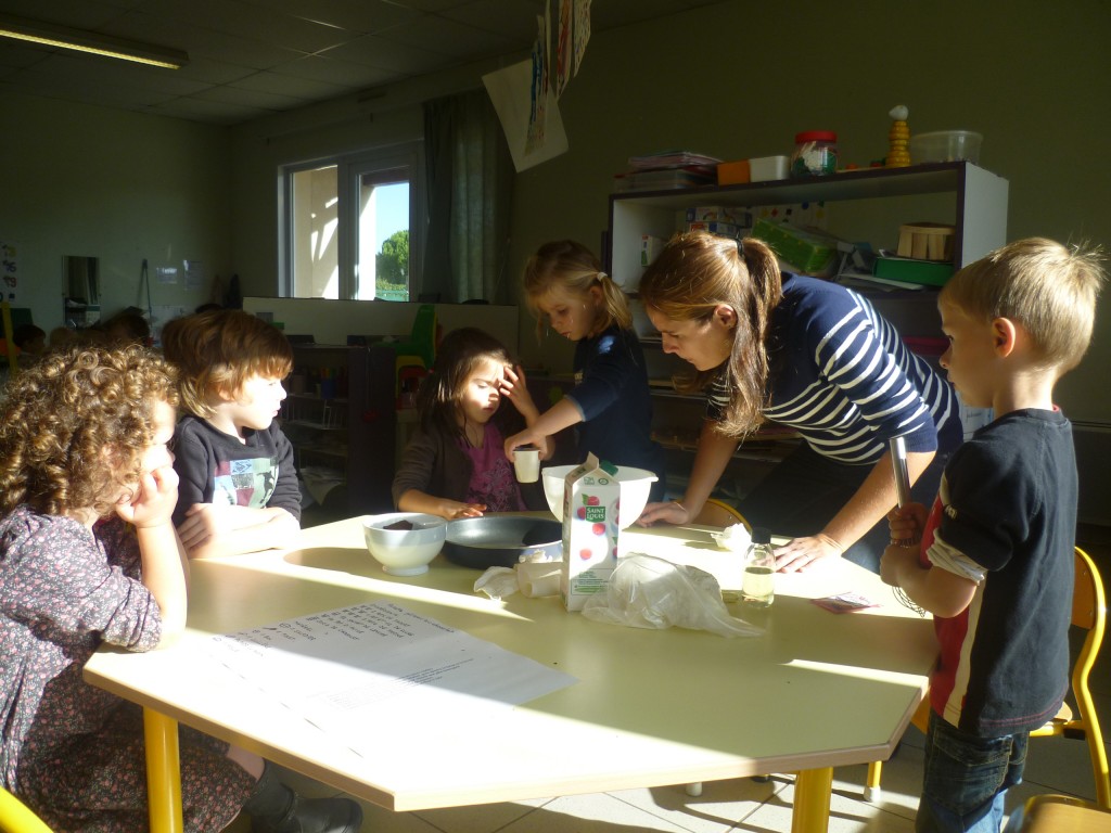 A l’occasion de la semaine du goût, la classe de TPS.PS.MS a cuisiné un gâteau au chocolat sans oeufs!