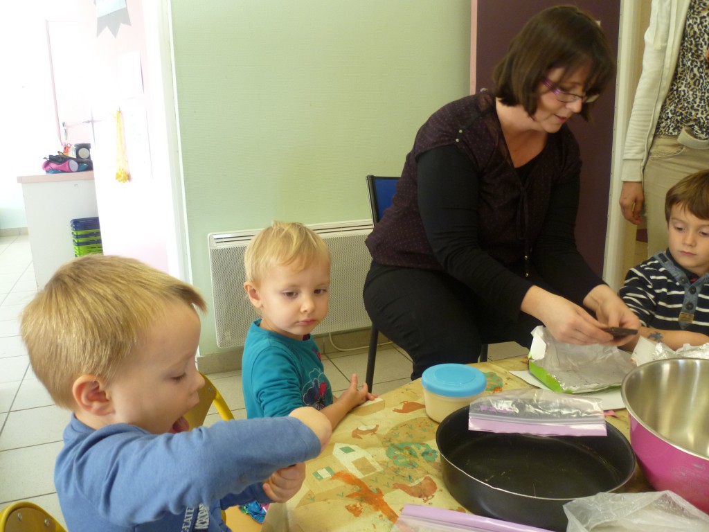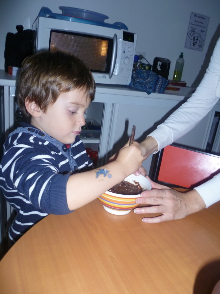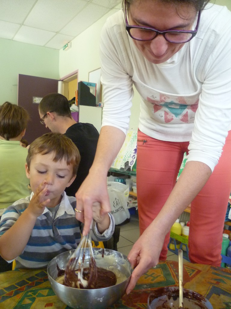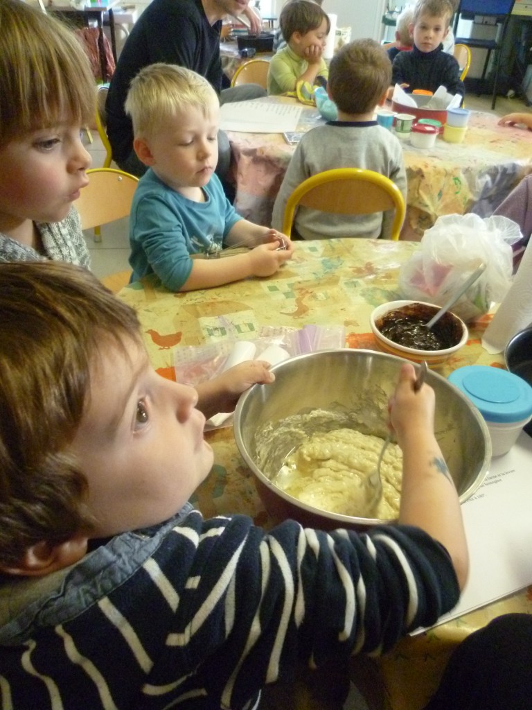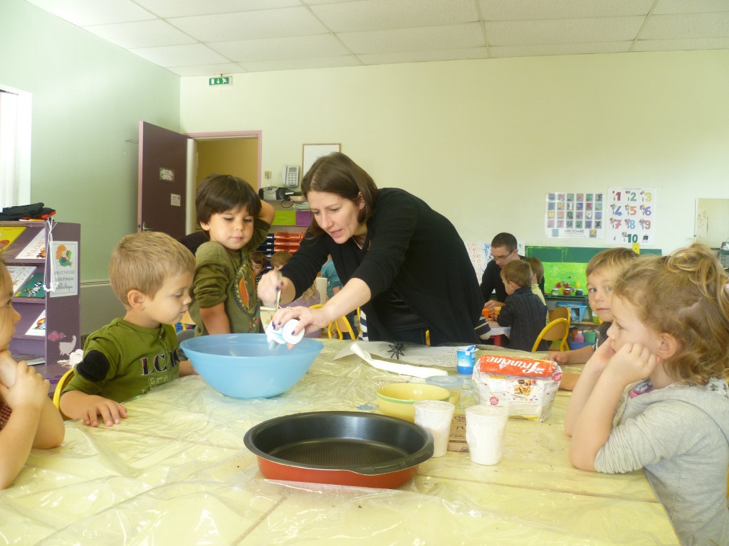 A l’occasion de la semaine du goût, la classe de TPS.PS.MS a cuisiné un gâteau au chocolat sans oeufs!