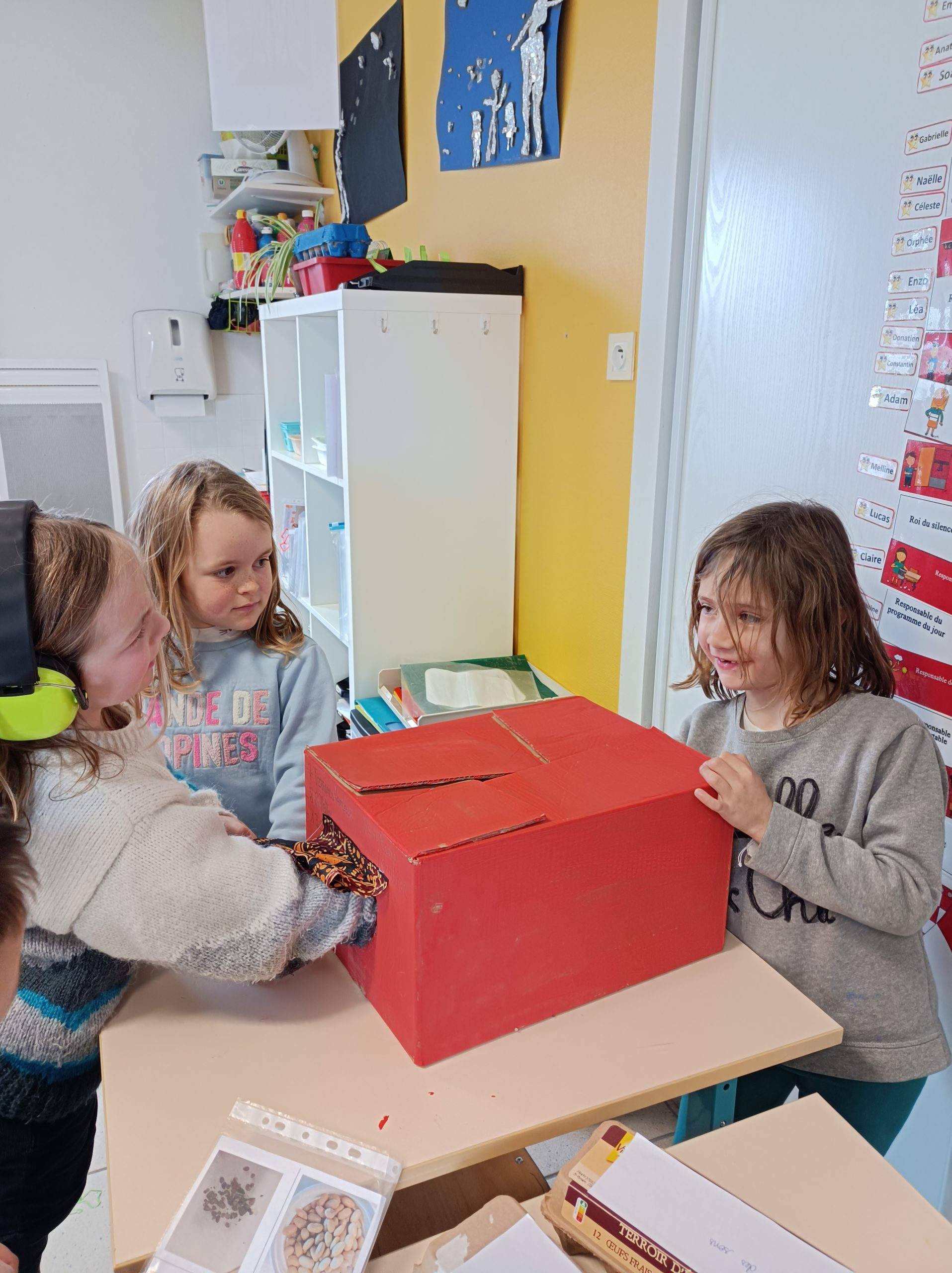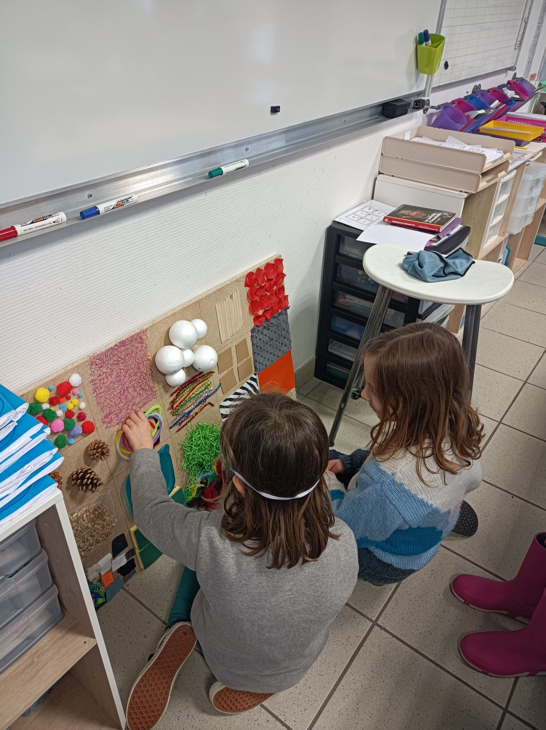 Pendant cette semaine, les Gs-Cp ont créé de jeux sensoriels : exploration des 5 sens à travers le jeu ( loto des sons, des odeurs, du goût salé ou sucré ! Panneau sensoriel, ballons sensoriels).