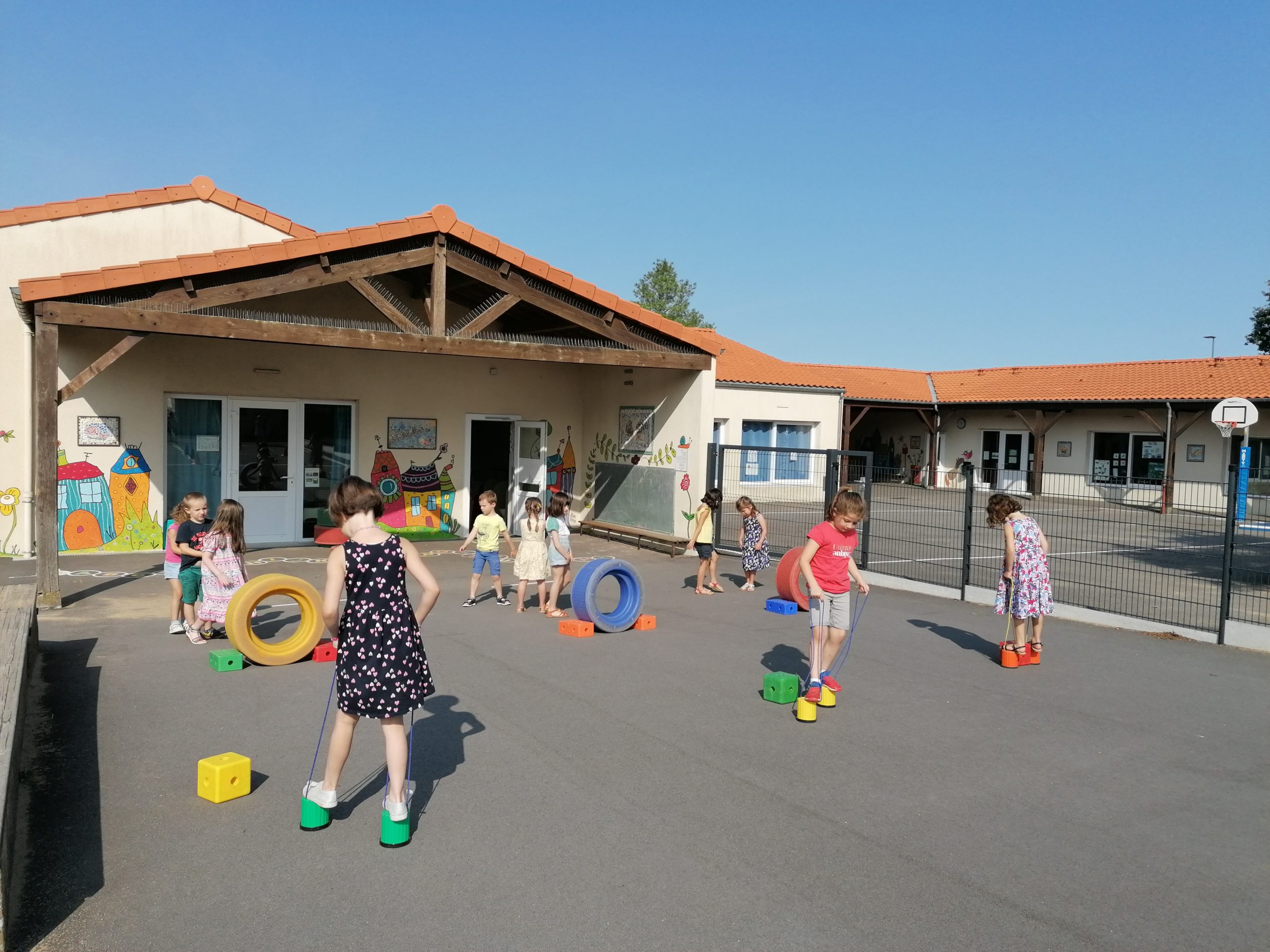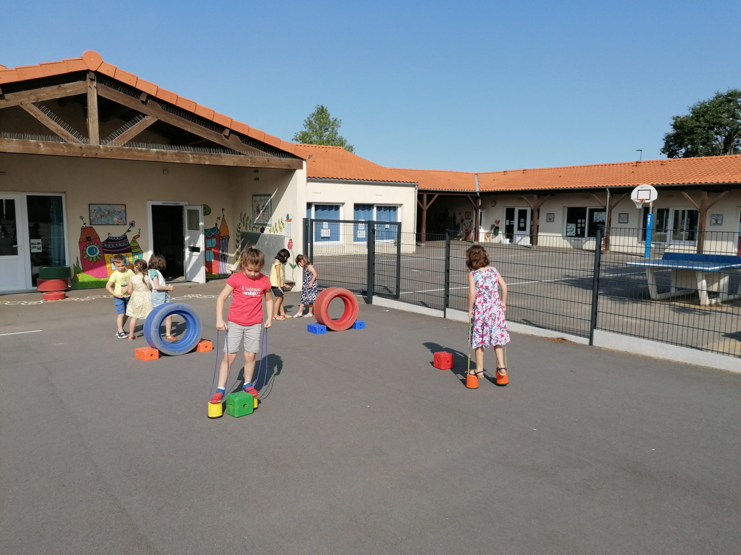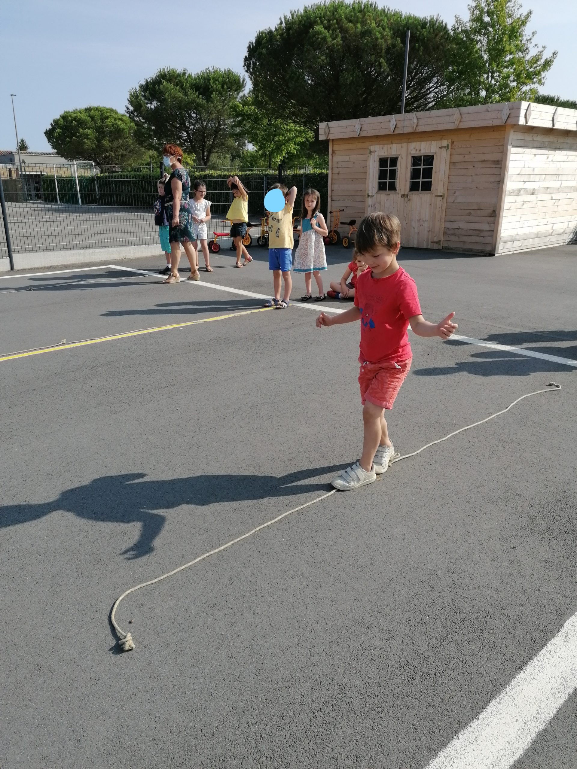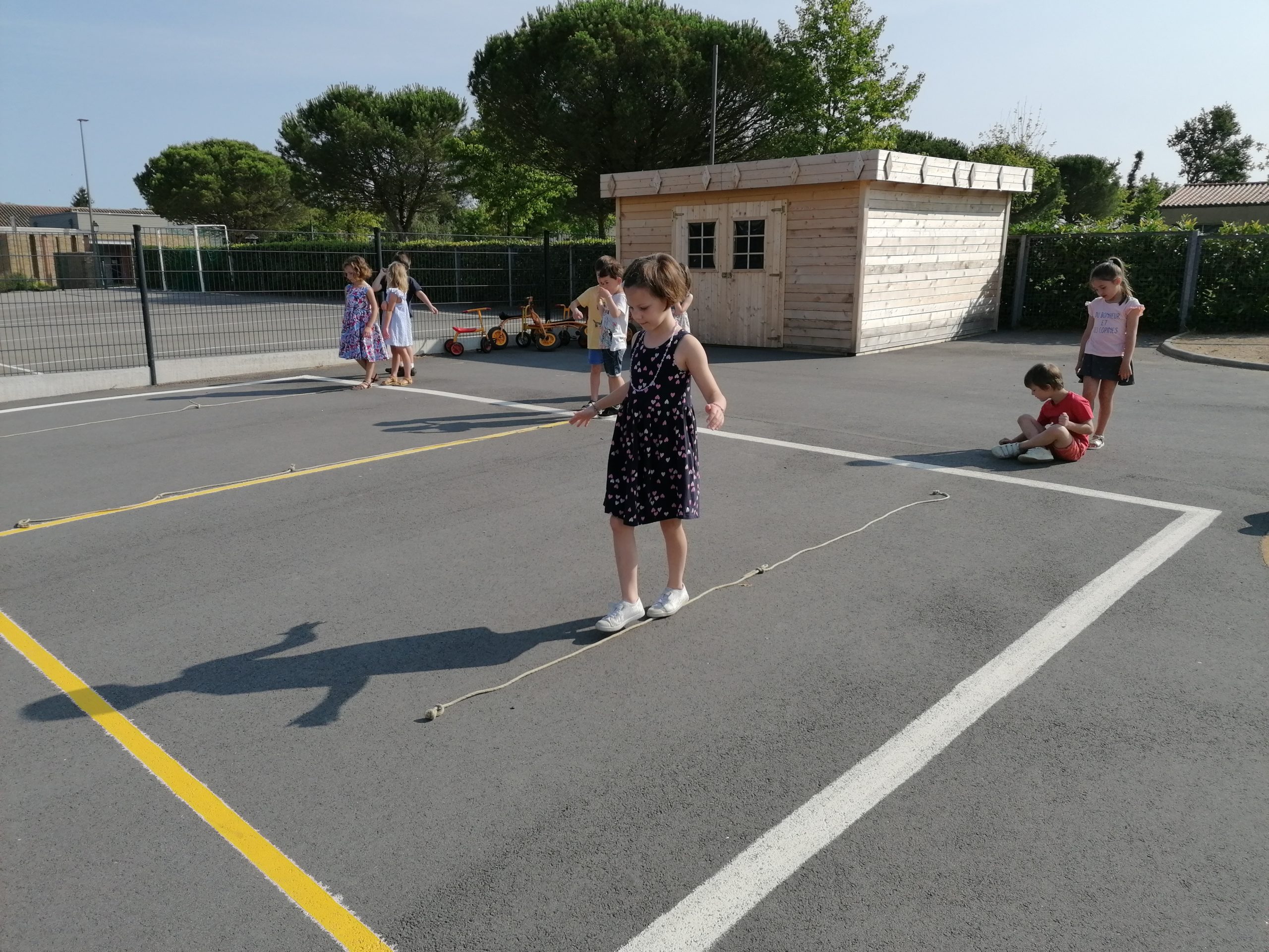 Les enfants ont retrouvé les activités motrices. Ici pour travailler l’équilibre: