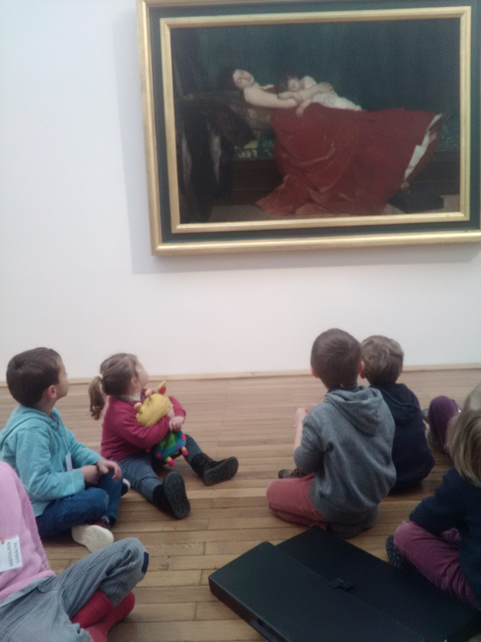 “Le sommeil” d’Alphonse Eugène Félix LECADRE: devant cette oeuvre, nous nous sommes questionnés sur les couleurs dominantes, en particulier le rouge mis en valeur par le vert. Nous avons participé à une activité dans la mallette autour de la question des couleurs complémentaires.