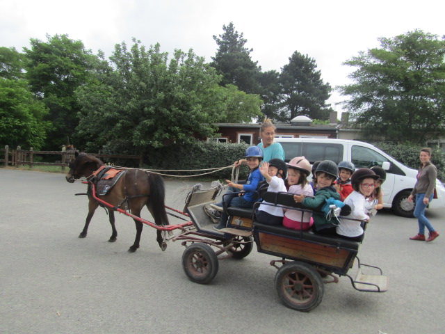 En cette fin d’année scolaire, les GS/CP ainsi que les CE1, se sont rendus à la Ferme Equestre des Mazerolles de Saint-Mars-du-Désert.