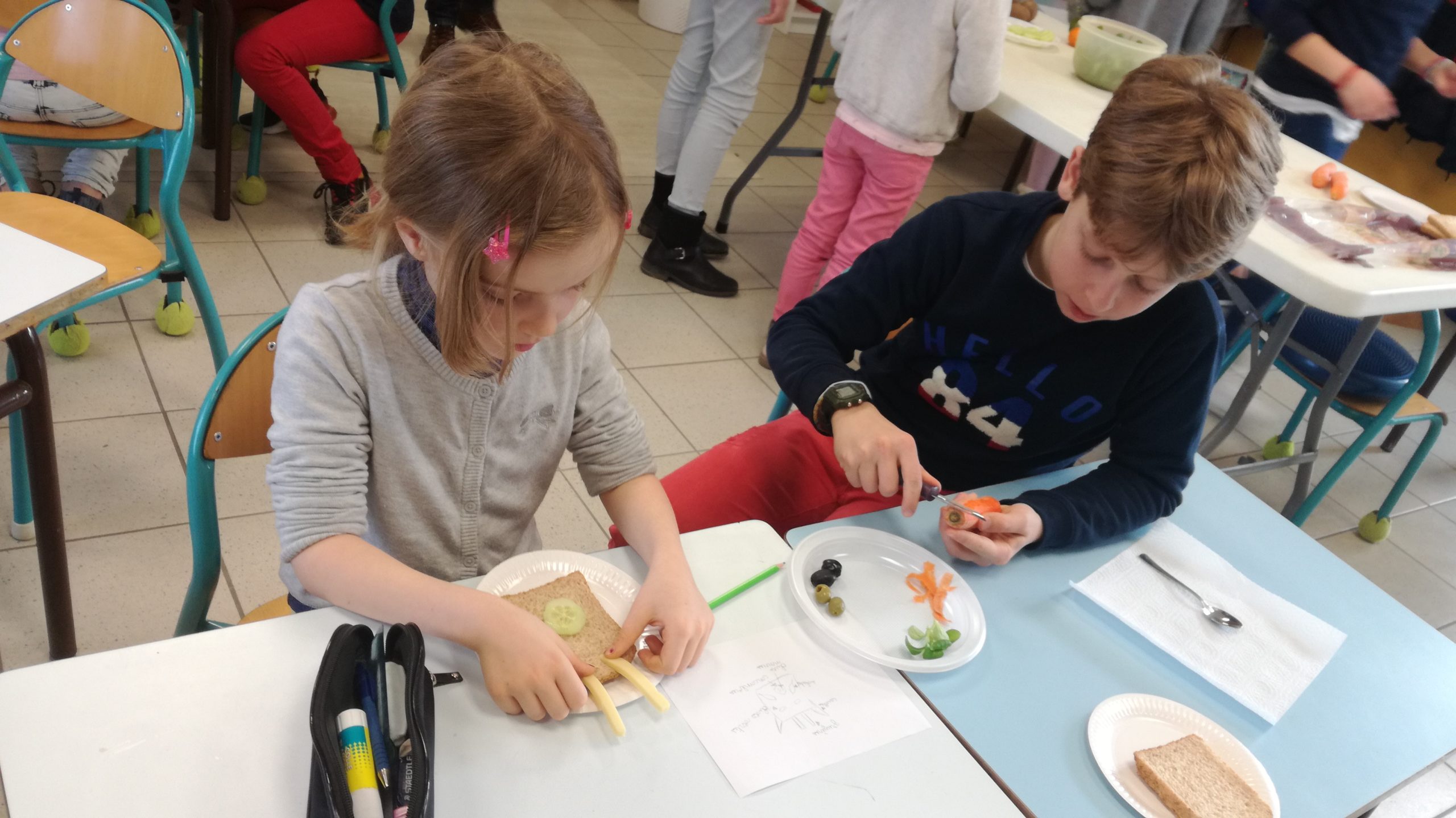 Dans le cadre de la préparation à la semaine sans écrans, les enfants de CP et CM1/CM2 ont participé à un atelier-cuisine sur le thème des tartines.