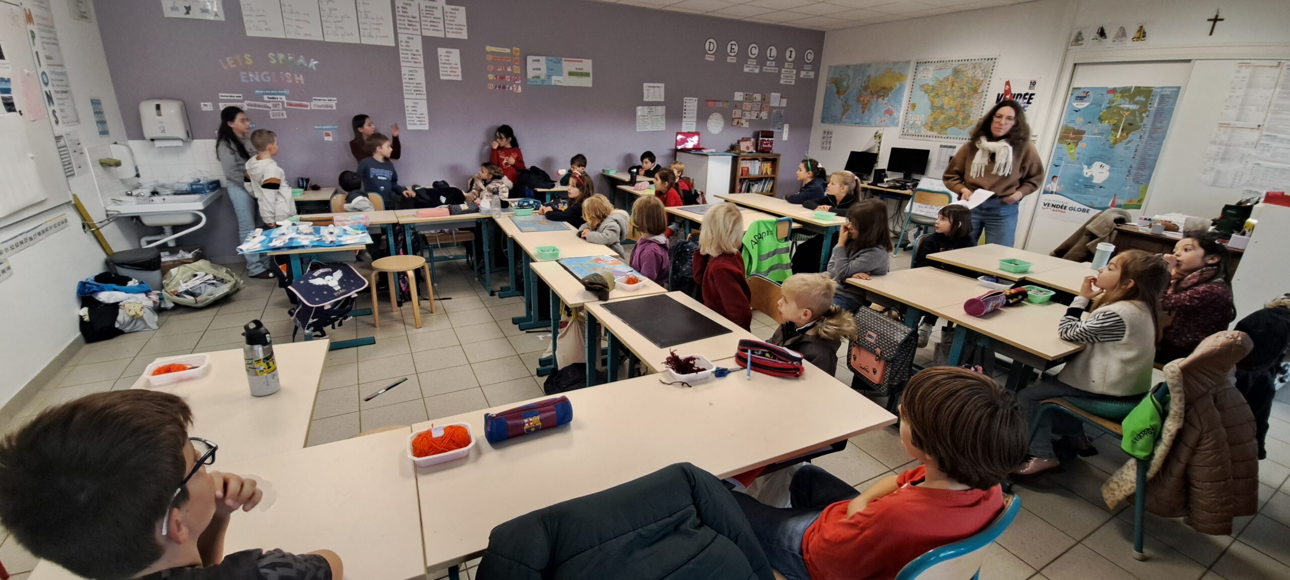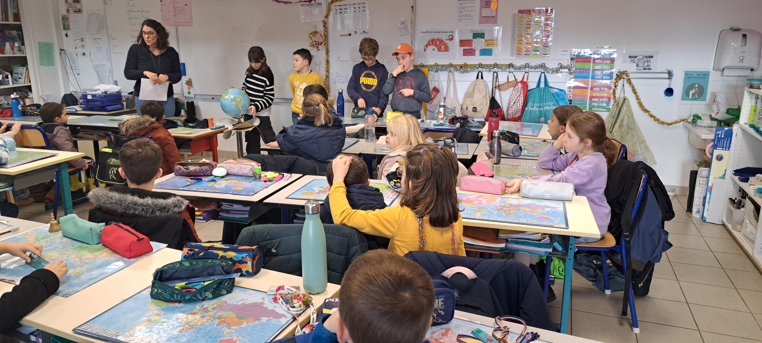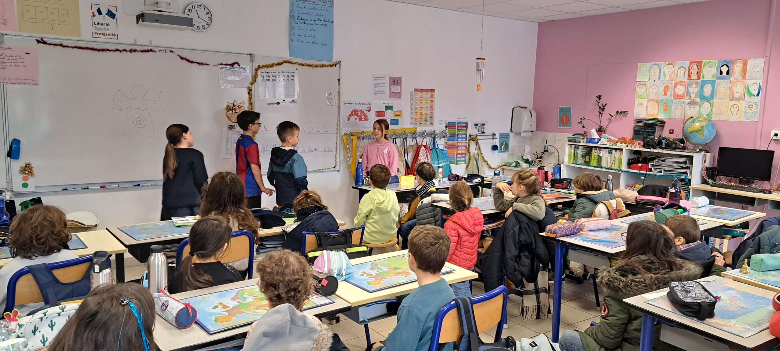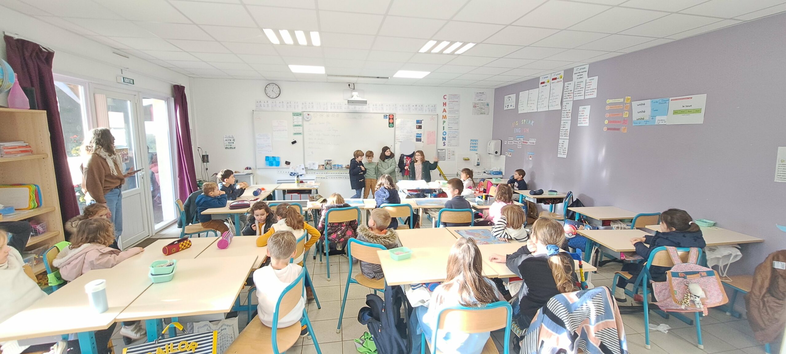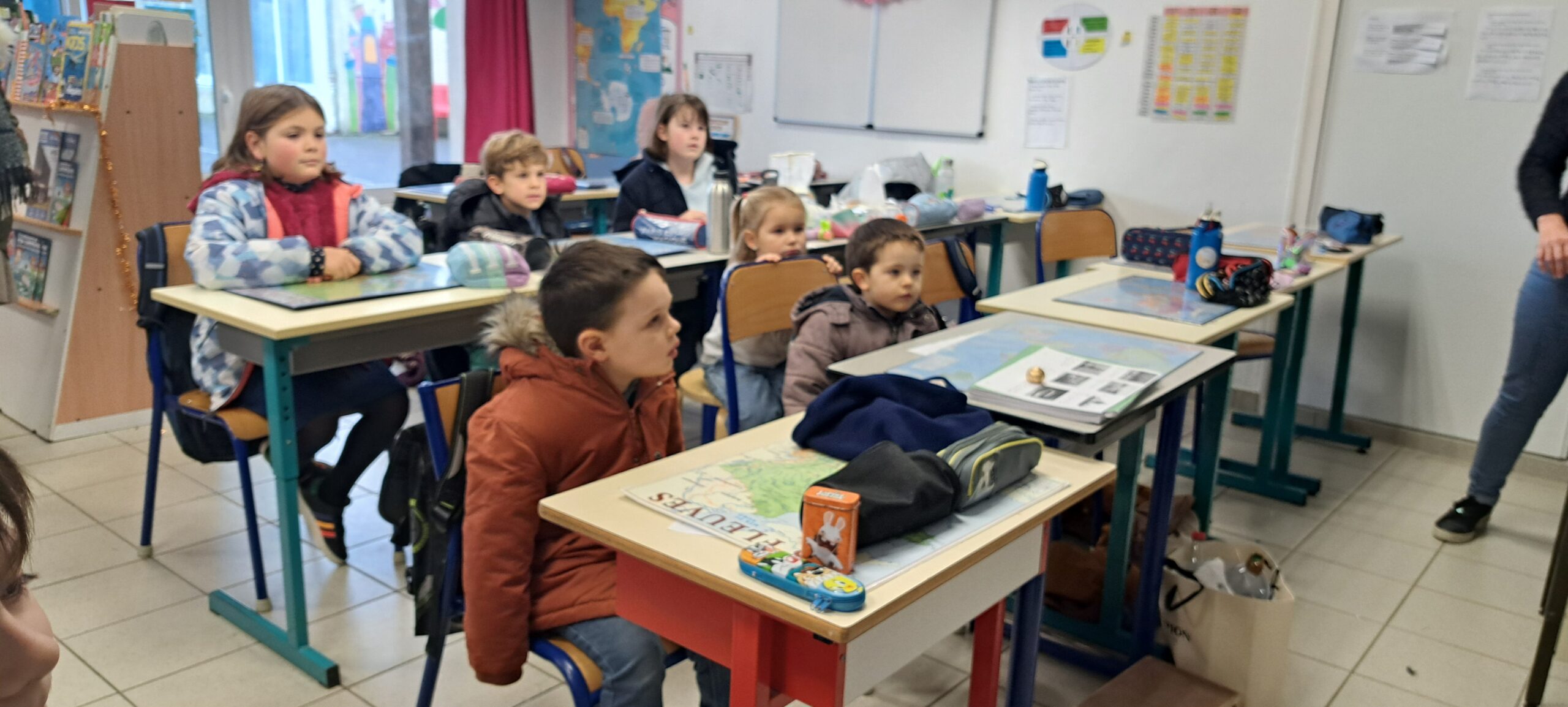 Maternelle, élémentaire… Ce matin-là, peu importe la classe : chaque élève a rejoint un groupe mêlant les six classes de l’école. Ensemble, ils ont parcouru les salles de classe transformées pour l’occasion en mini-expositions vivantes. Dans chaque espace visité, les élèves désignés comme “ambassadeurs” ont présenté un projet marquant de leur classe, mettant en lumière la richesse et la diversité des apprentissages vécus. Ce moment collectif, à la fois ludique et formateur, a permis à chacun de découvrir la vie des autres classes, de s’exercer à la prise de parole et de renforcer l’élan fédérateur de l’école.